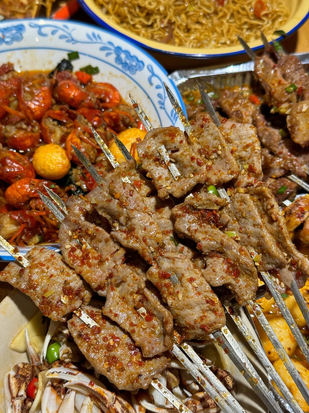 这家属于长沙本地人才晓得的深夜食堂!!环境很有江湖气又带着一些文艺气质!! 口味太好吃了!!无敌美少瓜还特意来吃过这家!!基本上都是回头客,生意巨巨🔥! 老板每天新鲜现穿的、非常爱惜自己店的口碑,专心在菜品上做研究…味道真的值得夸爆啊啊啊!! 我们点了满满一桌都很好吃没踩雷,点了好多肉都才人均60左右💰、牛肉、牛油…等烤串份量都很大!虾尾、蟹钳…连油炸花生米都好好吃😭 爱吃烧烤的姐妹放心冲,来这真的不会错!! 导航到📍鲁南老串