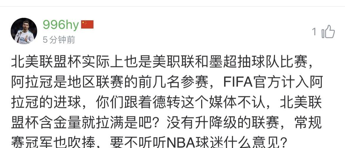 C罗粉丝否定美职联:没有升降级,常规赛冠军也吹捧,要不听听NBA球迷什么意见? 我就服了他们,一口一个“没有升降级”,把美职联定义为业余的商业表演赛,这不是把NBA也给否定了吗?常规赛冠军和季后赛冠军不都是业余冠军吗,有什么区别? 应该是我们对罗粉说:要不听听NBA球迷什么意见?反而是罗粉抢我们的词儿,装好人,和NBA球迷一个战壕里了。 所以,罗粉都是手段阴毒、两面三刀的小人。