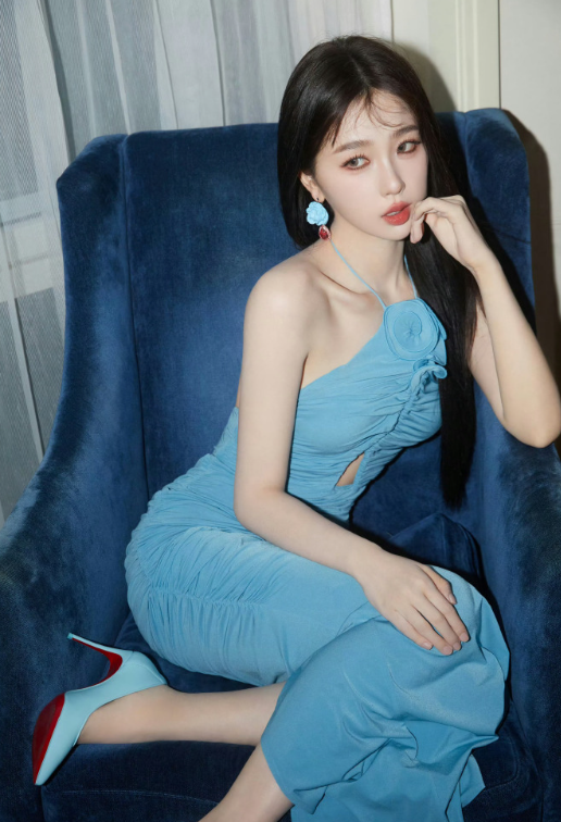 虞书欣的一身露背蓝色修身长裙,又美又飒,超喜欢的!