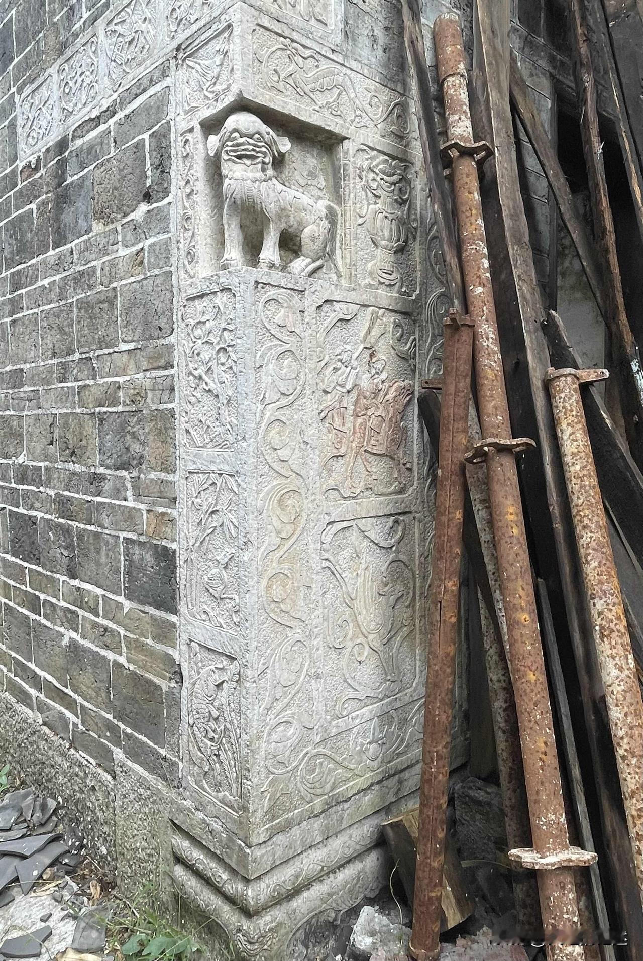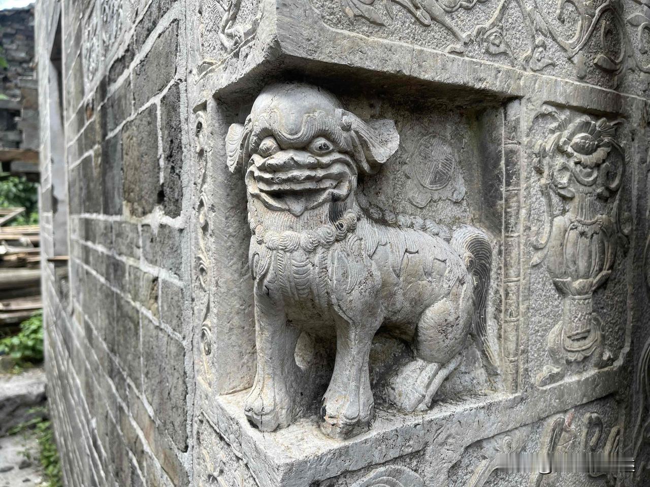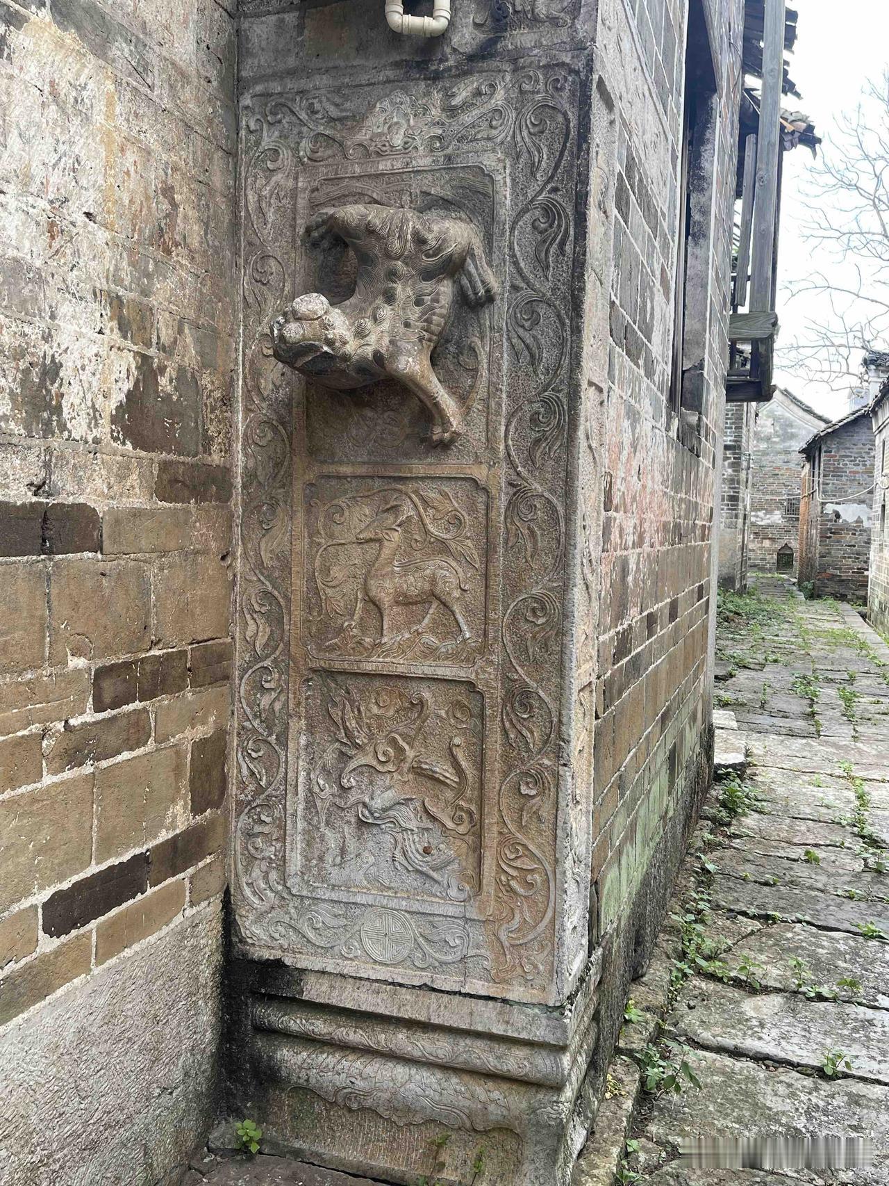 滨溪村,湖南省永州市蓝山县新圩镇下辖, 地处蓝山、临武两县交界处。因村前溪流蜿蜒环绕,故名“滨溪”。 滨溪村为明清时期的古建筑,至今已有五六百年历史。该古村落共有10余栋保存完好的古宅,每栋占地200~300平方米不等,总面积近10亩。一处古宅门口,大门两边各镶嵌着一对石麒麟,头朝下呈倒挂状态,寓意财源滚滚。在另一处古宅,大门左右两边墙上对称地刻有福、禄二字和“三元及弟”的石刻,大门两边转角处镶有一对小石狮,恰好处于墙壁转角中缝上,神形兼备、立体感强,是古代石刻艺术中的登峰造极之作。石狮下面,一边是妇女骑马抱子的石刻,另一边是头戴官帽身骑高头大马的男子衣锦还乡的壁画,寓意人丁兴旺、财运亨通。根据石刻布局判断,古宅主人曾是官宦世家。