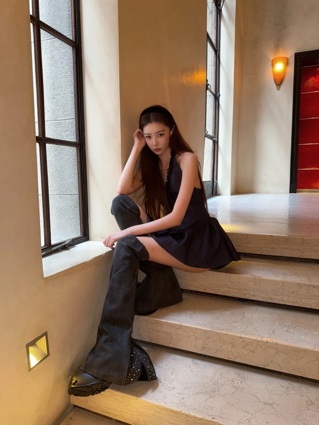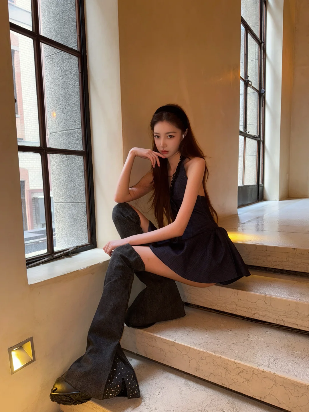 ootd DaphneLab方糖过膝靴大裤管 fitcheck