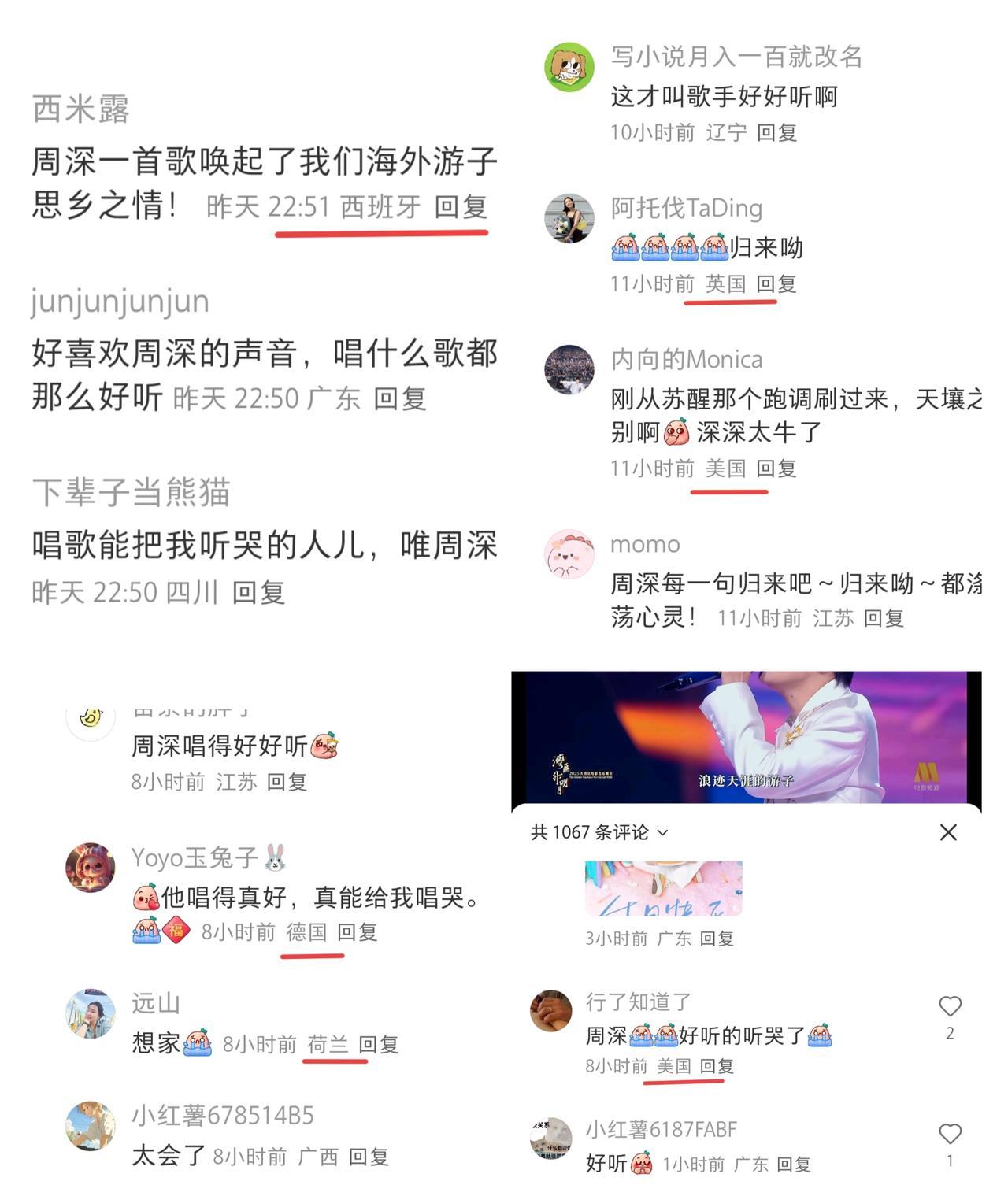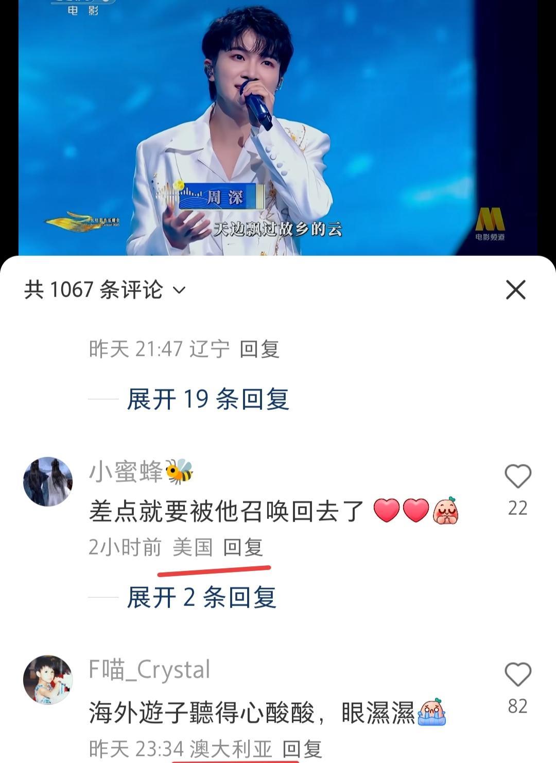 周深《故乡的云》唱哭游子! 周深湾区升明月一曲《故乡的云》唱哭了多少游子! “周深一首歌唤起了我们海外游子的思乡之情!” “真好听呀,满满滴深情,召唤感极强!” “他唱得真好,真能给我唱哭!” “听的我也想回家了!” “泪目了,周深优美深情动人的歌声直击心灵,那是家乡的呼唤,想回家了!” 看到世界各地的ip留言纷纷表示,想回家了,听到流泪,或许这就是周深在六首备选歌中,选中这首歌的意义! #周深#
