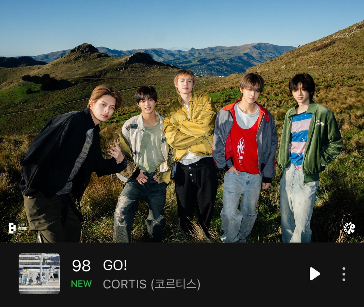 大黑新男团cortis《GO!》再攀新高成功打入Melon周榜📊