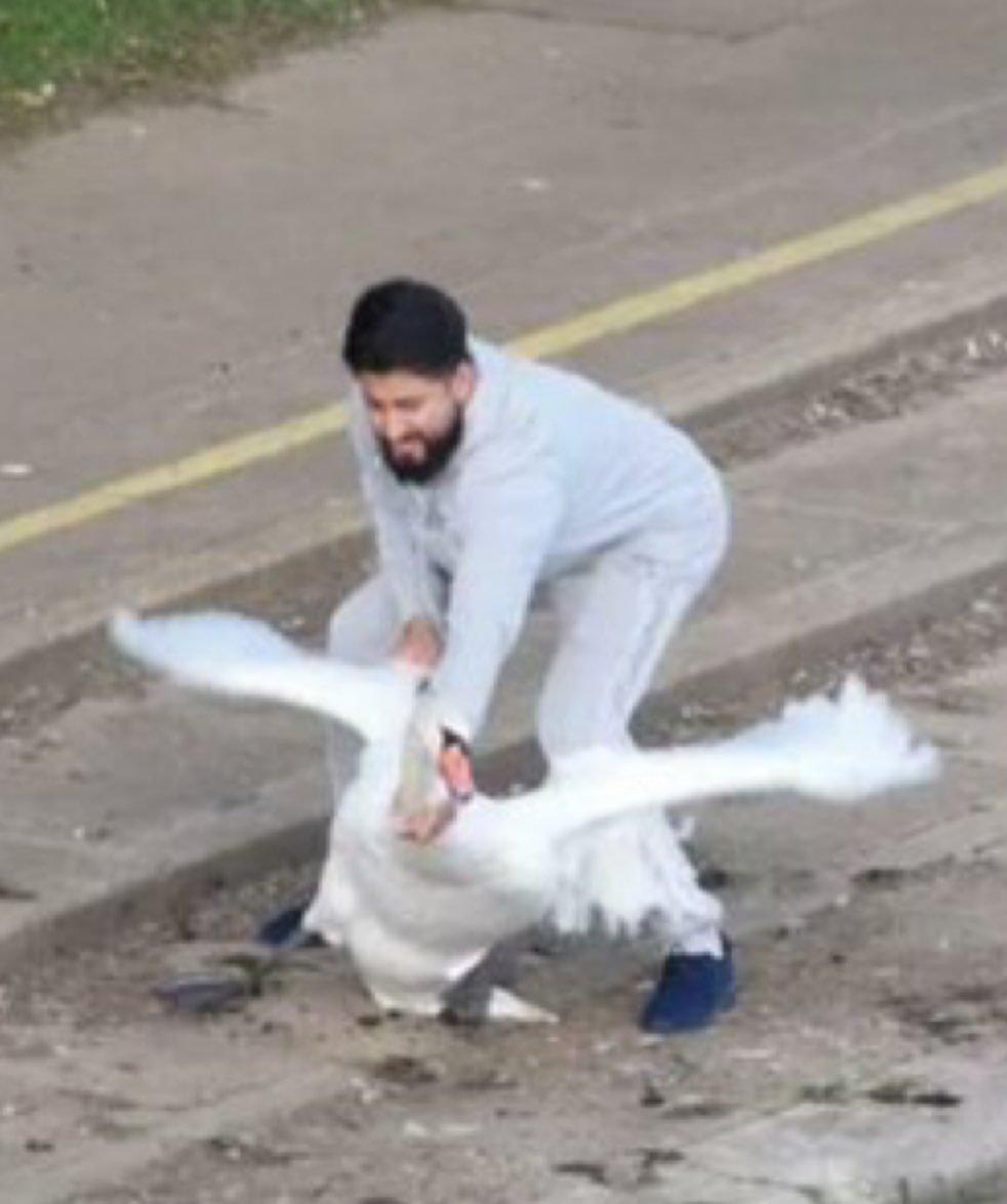 英国的天鹅万万没想到啊,太久的安逸生活已经对危险失去了敏锐,被人类雄性从后方抱起。 天鹅或许出来没想过,自己生来可能是案板上的肉。英国帽子菽粟曾确认,英国柴郡温斯福德码头的天鹅们遭遇了一些神秘男子的袭击,至于是被捉去做成汤还是烧烤了,至今不得而知。 也有一种说法,这两人实际上是兽医,他们正在给天鹅们检查身体。毕竟天鹅在英国是保护动物,连它们的巢都是严格受保护对象。