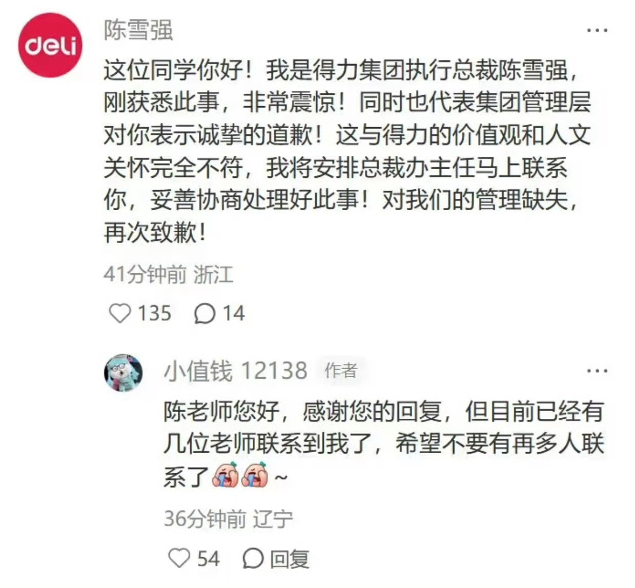 得力集团辞退跛脚员工经历了三轮面试,也给了offer,还去报到了,结果才说不同意!我认为大概率是HR见到了人才发现跛脚,怕被领导质疑自己的工作能力,所以趁还没正式入职就直接让员工离开,还忽悠人家给自己发信息说是不适应主动离开的。这种事情曝光出来,对企业来说是很大的打击,这个HR估计饭碗保不住了!网友称因跛脚在入职当天被得力辞退得力CEO道歉