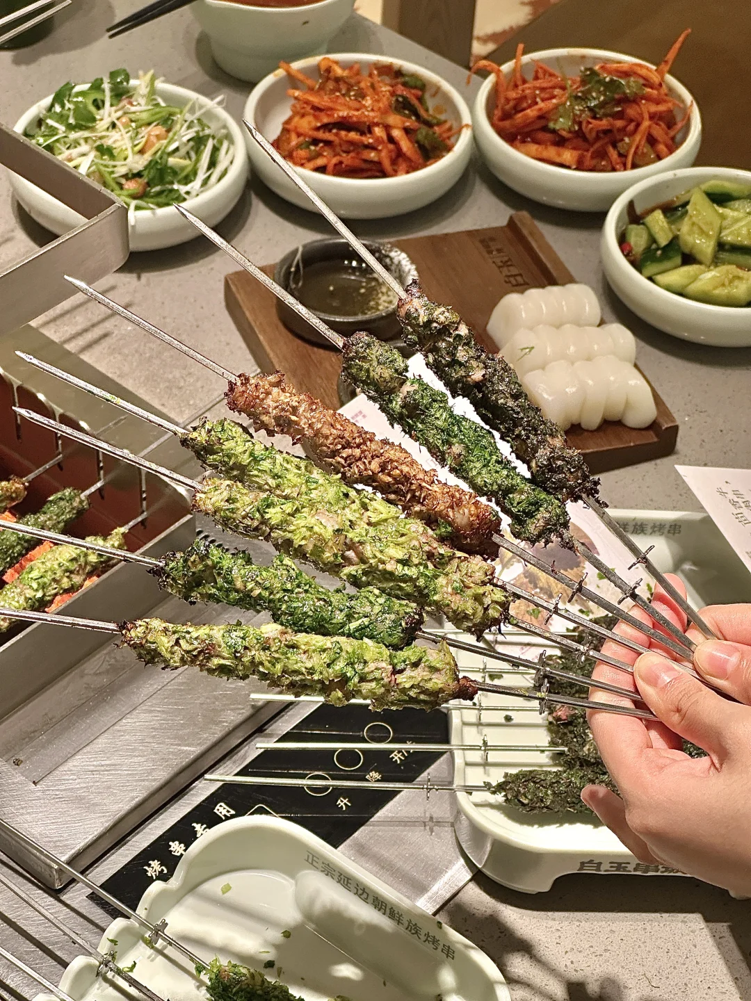 卧!卧!卧!这家朝鲜族烤串上了绿色牛肉串!!