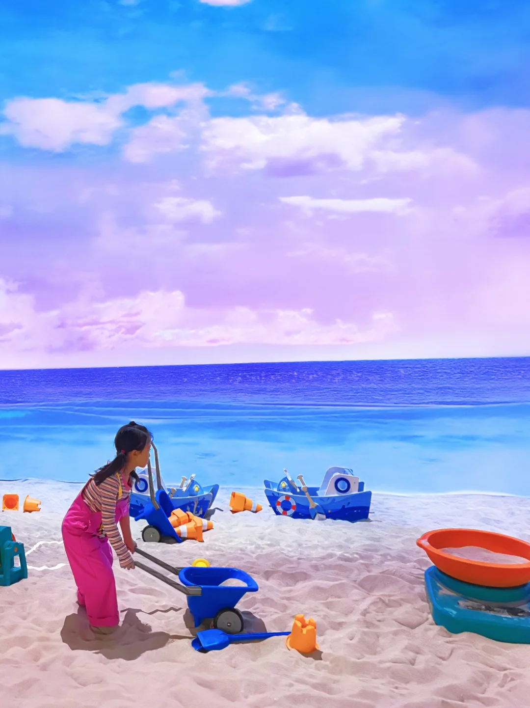 🏖进门直奔《滨纷沙滩》,在无边界沙滩上玩耍,还有时而变换的云彩,光娃负责挖沙我负责欣赏美景即可,太治愈啦!