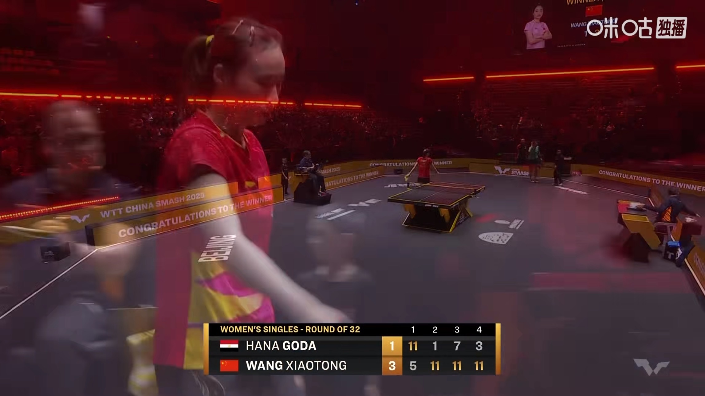 王晓彤3比1高达(5-11,11-1,11-7,11-3)晋级女单16强WTT中