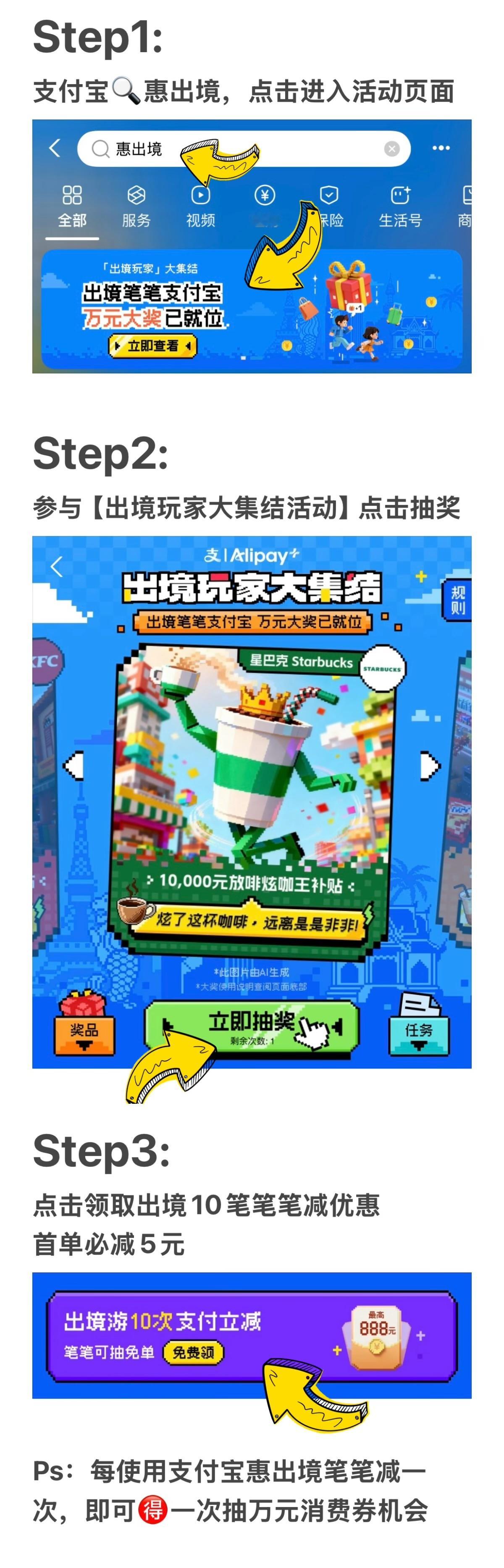 十一记得接支付宝惠出境万元大奖 每一次远行都是对自由的致敬——没有固定剧本,却在每个转弯与蔚蓝海岸线相遇。这次跨越南半球,驶向澳大利亚,探访悉尼歌剧院的帆影、大洋路的壮阔、黄金海岸的日光~让旅行尽兴的不止风景,还有实际的福利~9月25日-10月12日,上支付宝搜惠出境,参与出境玩家大集结活动,即可获得10笔境外消费随机立减,每笔消费都能减免,每笔最高省888元,更有万元出境大奖等你领!10张1000元大额消费券,幸运抽中就属于四舍五入白玩一趟~只要支付选对,旅游快乐加倍!无论是去免税shopping,还是去悉尼鱼市场“摸鱼”,纯纯都属于是花小钱获得大享受了~ 看到已经有人中大奖了,大家也快去试试!最实用的旅游攻略