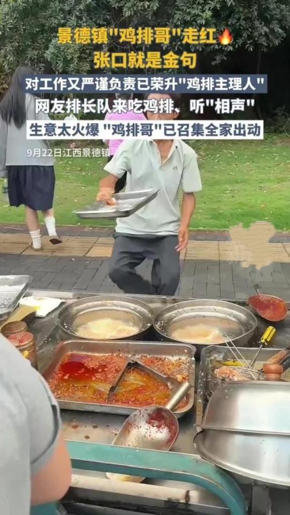 “鸡排哥”爆火成景德镇新顶流,其摊位2公里内酒店价格国庆期间普涨2-3倍,原价2
