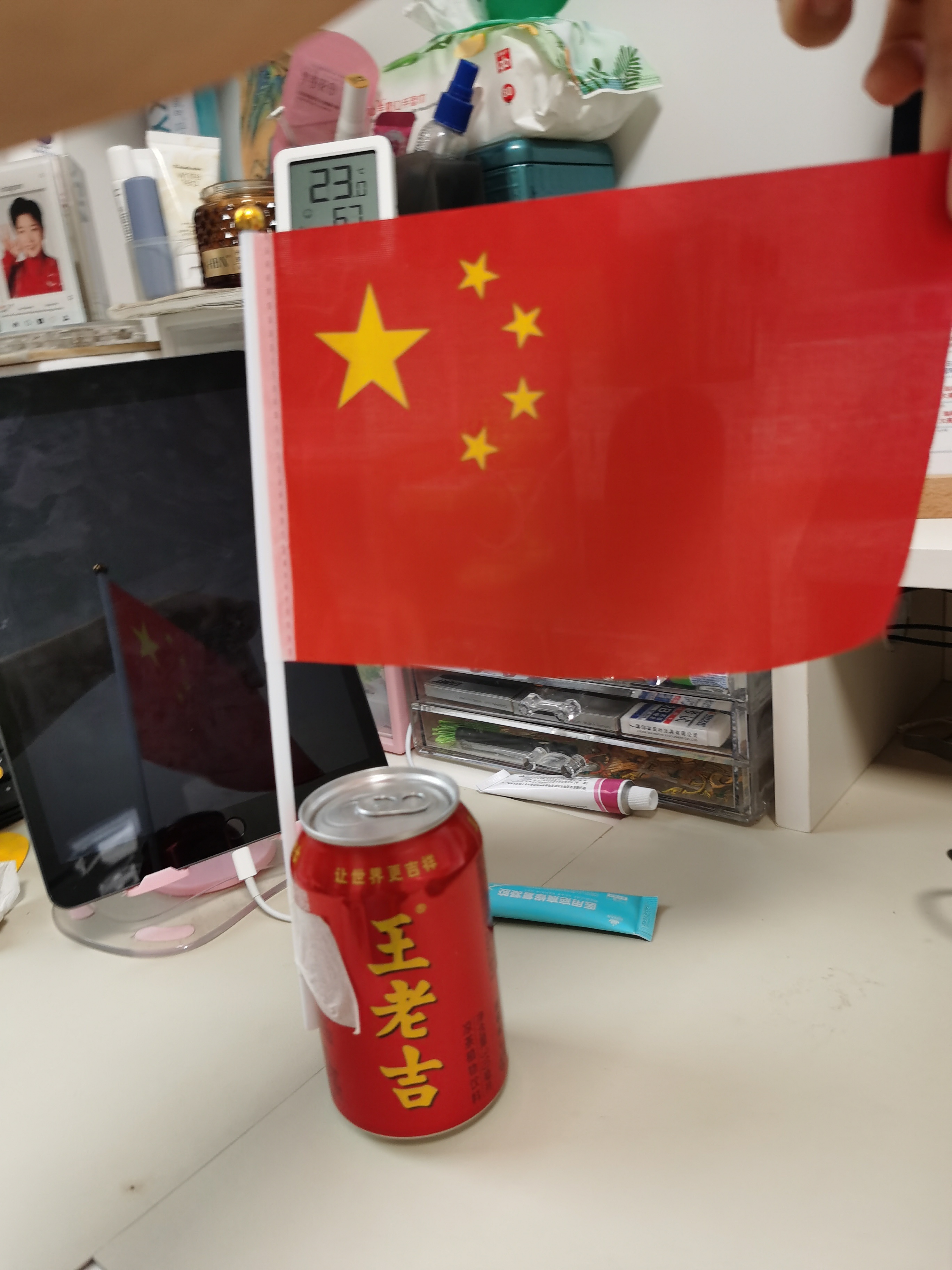 插好国旗了,做了蒸出来颜色很奇怪的抹茶红豆卷