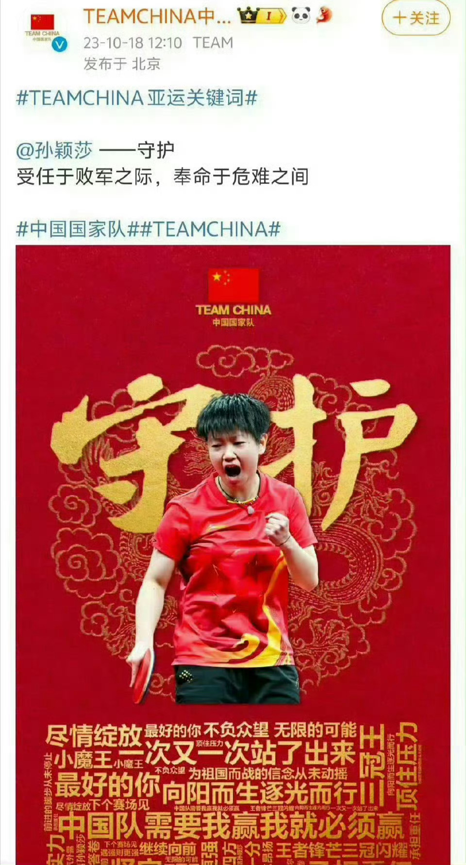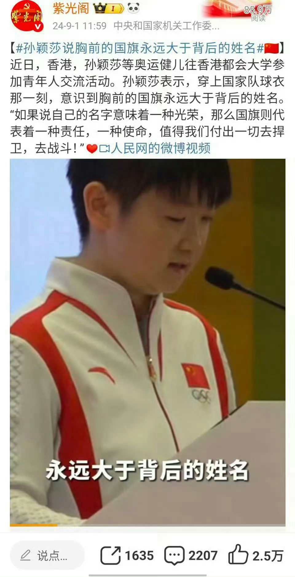“你的祖国会非常为你骄傲的。”孙颖莎