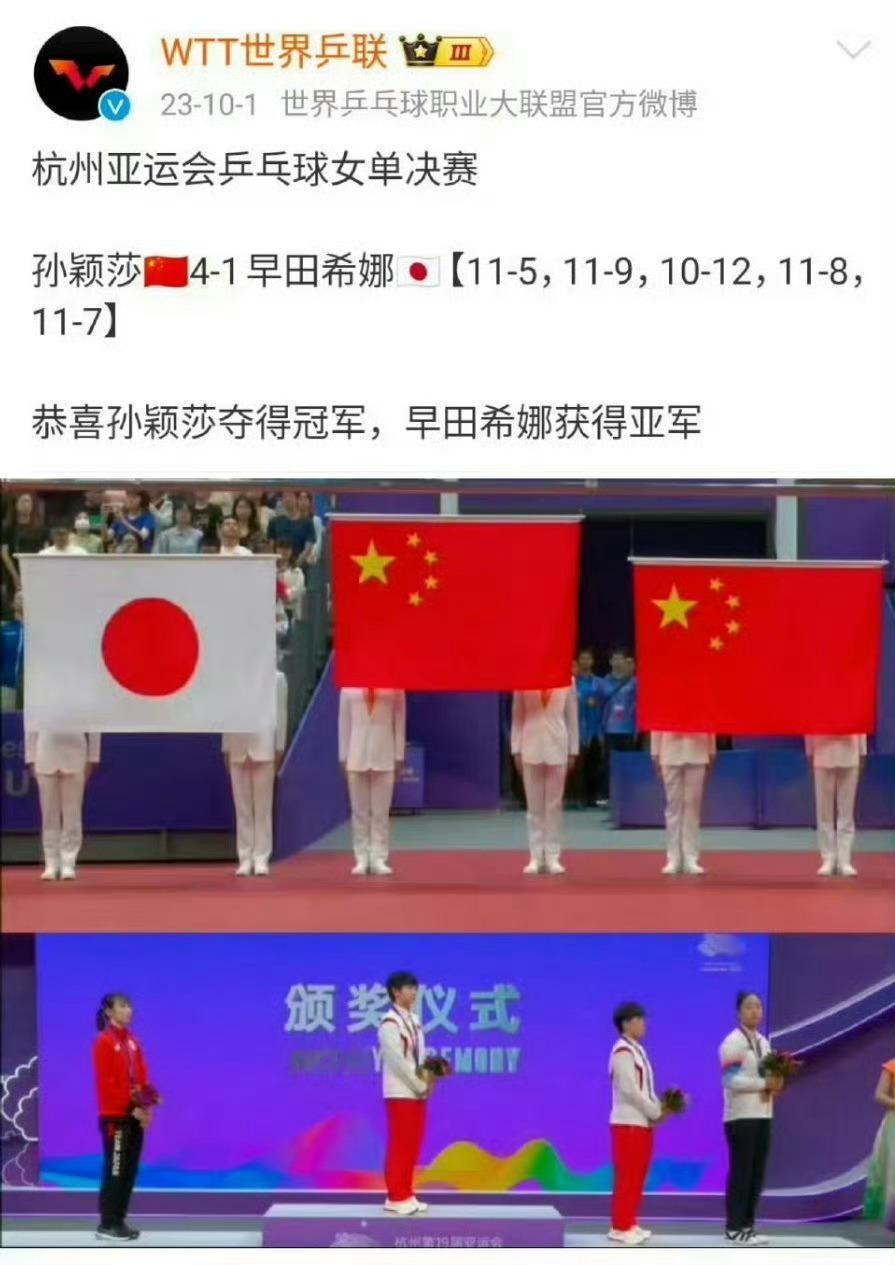 2023年杭州亚运会开幕式孙颖莎代表全体运动员宣誓✊🏻。女单半决赛队友丢半区,孙颖莎在国庆节当天承担巨大的压力决赛击败日本选手让五星红旗最高升起。