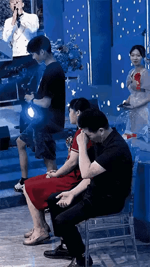婚礼上的一幕 这是婚礼现场,舞台上这两个人,是喜公公和喜婆婆,两个人在儿子、儿