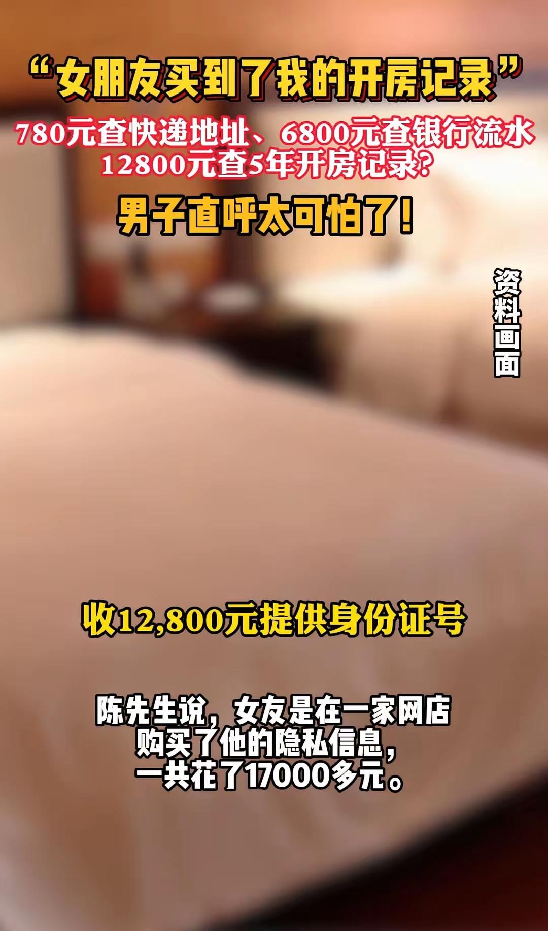 太可怕了!山东一男子有个谈了3年的女朋友,女友疑心重,竟偷偷花了17000元在网上找人查了他的个人隐私信息,包括开房记录,更让男子恐惧的是,女友把查到的信息摆在他面前,他仔细一看,这些信息竟然全是真的,男子直呼可怕! 陈先生看到女友查到的信息后,后背一阵发凉。那些记录准确得可怕,连他出差时住的酒店和具体时间都一清二楚。他怎么也想不到,自己有一天会成了“透明人”,隐私被人当成商品随意买卖。 这笔钱可不是小数目,女友前后一共花了一万七千元左右。她通过电商平台上的一家网店,付了12800元就拿到了陈先生五年的开房记录,连同住人信息都能查出来。 感觉不安的陈先生自己去网上咨询了一番,结果更吓人。查个快递或外卖收货地址只要780元,银行流水报价6800元,光凭姓名和电话就能查到身份信息,用身份信息又能挖出更多隐私。 记者悄悄调查发现,电商平台上不少商家都做着这种买卖。他们打着“律师调取被告信息”、“网上立案”的幌子招揽生意。问到信息来源,商家都避而不谈,只保证数据是真的。 这类隐私探查生意,如今在黑市上已经明码标价。快递地址、银行流水、开房记录……只要你肯掏钱,几乎没有什么隐私是买不到的。 这种实时、准确的隐私数据,是不法分子通过不安全的数据接口窃取的。一些机构在设置数据接口时缺乏安全措施,黑客就能轻易“劫持”接口获取实时数据。 还有合作伙伴和“内鬼”也是数据泄露的重要渠道。有的快递员工私自向不法分子有偿出借工作账号,导致超过40万条公民个人信息泄露。 陈先生把自己的遭遇反映给了电商平台,客服建议他举报,等待相关部门核实处理。这样的处理结果能否彻底铲除这条黑色产业链,还是让人担忧。 我们每天在网上留下太多痕迹了。晒生活的时候,最好避免暴露定位和家庭环境细节。身份证号、家庭住址这些敏感信息,在非必要场合尽量不要透露。 身边有个能花一万多块查你隐私的伴侣,这种感情确实让人害怕。但更可怕的是,我们生活在一个隐私能轻易被买卖的时代。保护个人信息,需要更严格的法律法规,也需要我们每个人提高警惕。