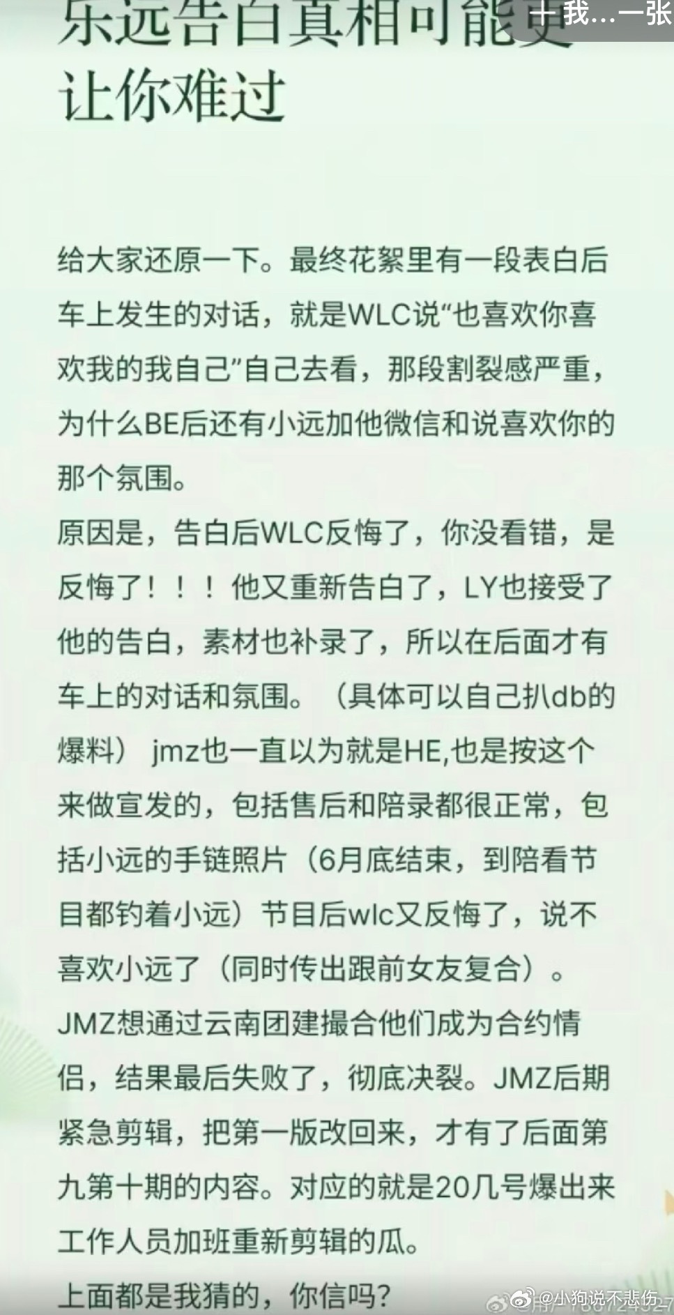 最后告白有两版,一个be一个he,先be的,他又反悔了,重新补录了he的,所以后续 陪看很自然 。一直在钓着小远,云南售后小远问他要不要确定关系 ,他还是一直不确定,然后小远拒绝在接触了,彻底be 。所以节目组放出来的是be的这一版!