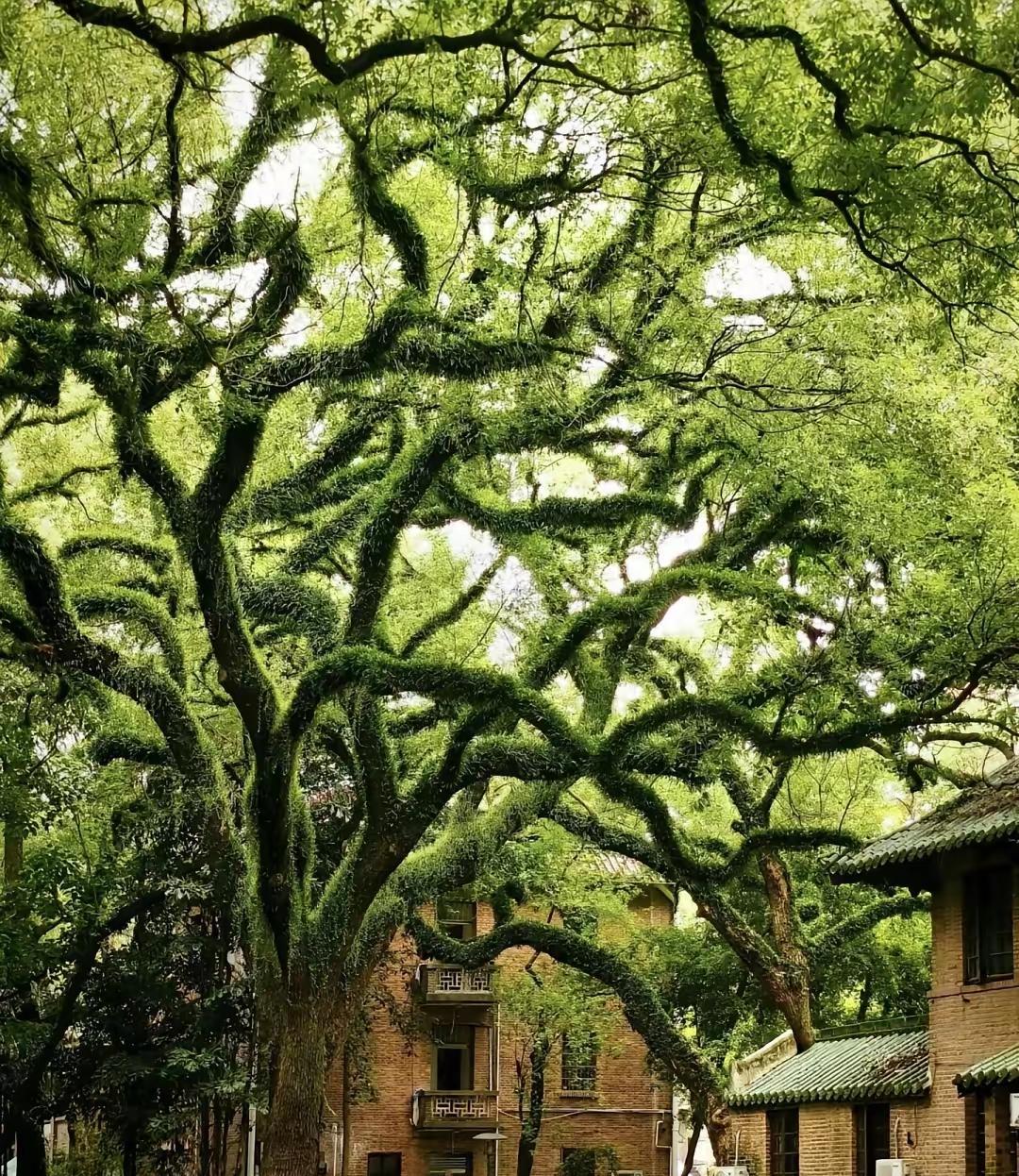 看来广州真的不是很宜居,这是中山大学的树,树上因为潮湿,长满了类似青苔的植物,整个树上都是,有点热带雨林的感觉。 不过瑕不掩瑜,中山大学也是中国最美的大学校园之一,在我心目中可以排进全国前五,与北京大学、中国海洋大学、武汉大学、厦门大学并列,