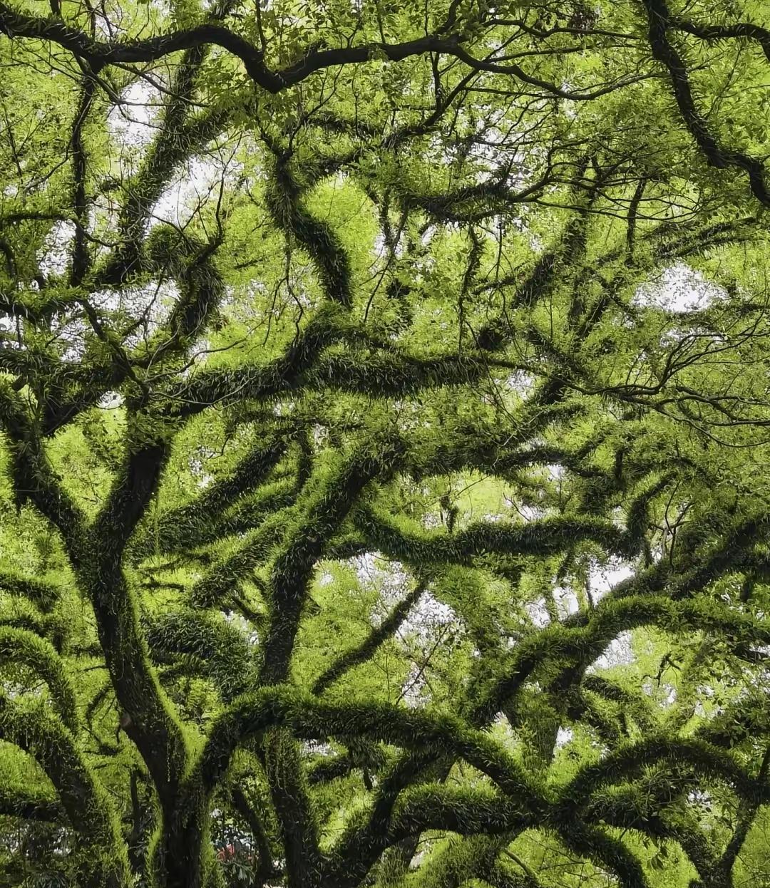 看来广州真的不是很宜居,这是中山大学的树,树上因为潮湿,长满了类似青苔的植物,整