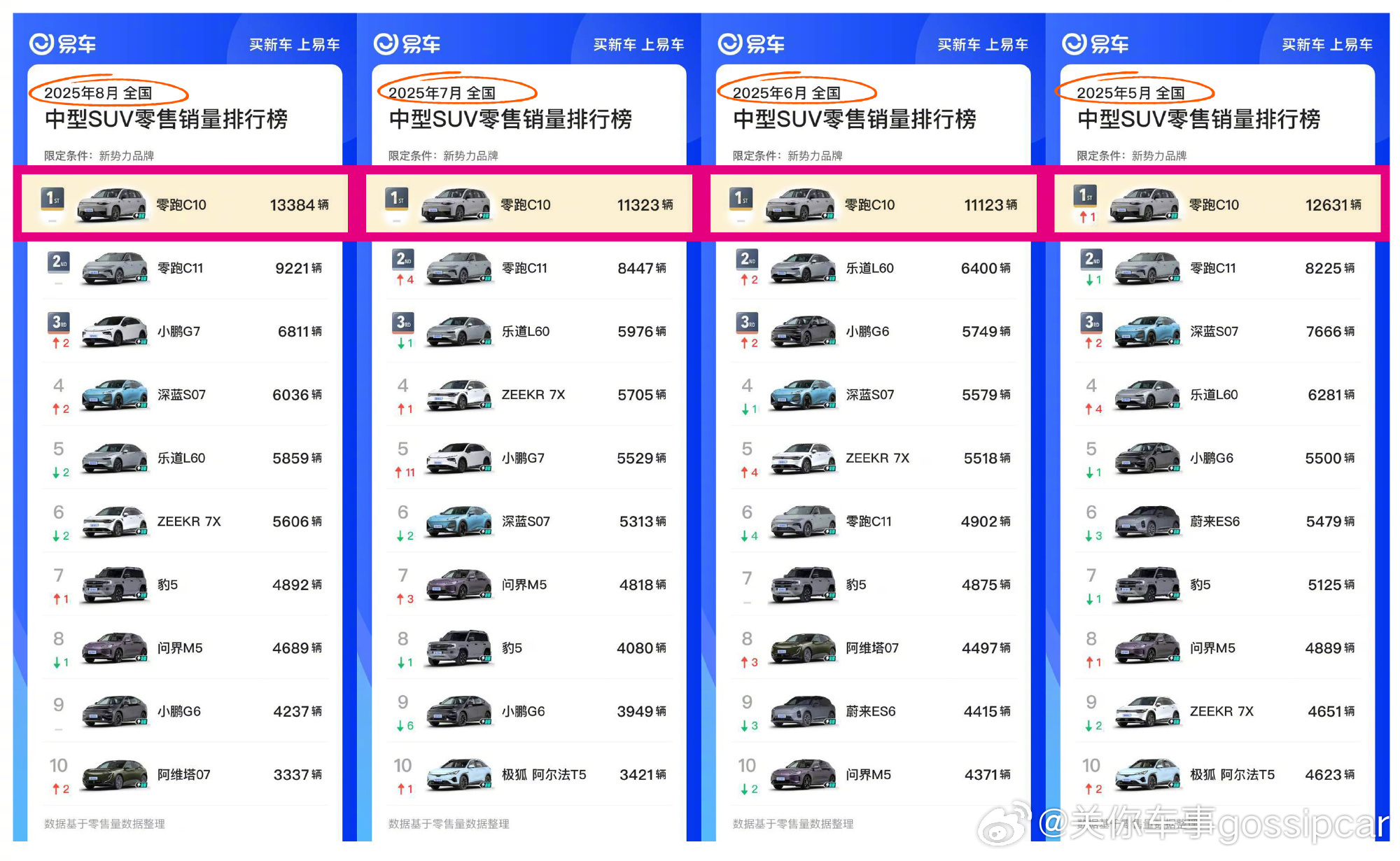 我们来看看它们产品的销量情况,首先是B01连续两月交付破万,之前我也做过了相关的文章,可以回看一下。不仅如此,B10在9月的销量也破万了。显然,更亲民的B系列已经取得了阶段性的优势。