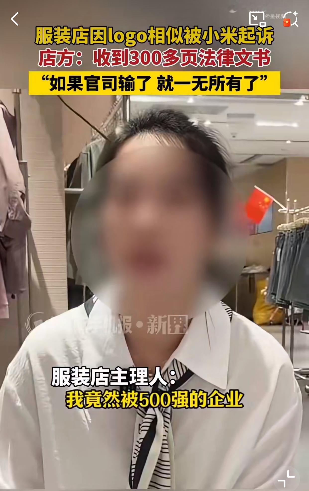 一服装店因Logo和小米相似,被小米起诉,现在服装店主理人出来哭诉,如果官司输掉