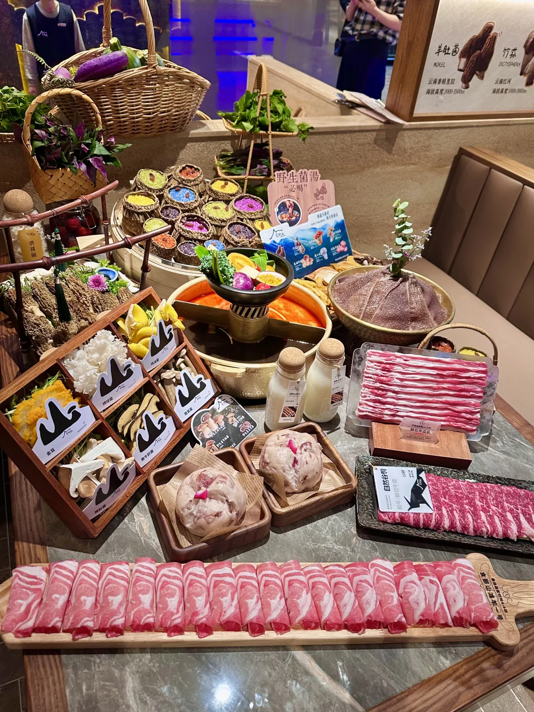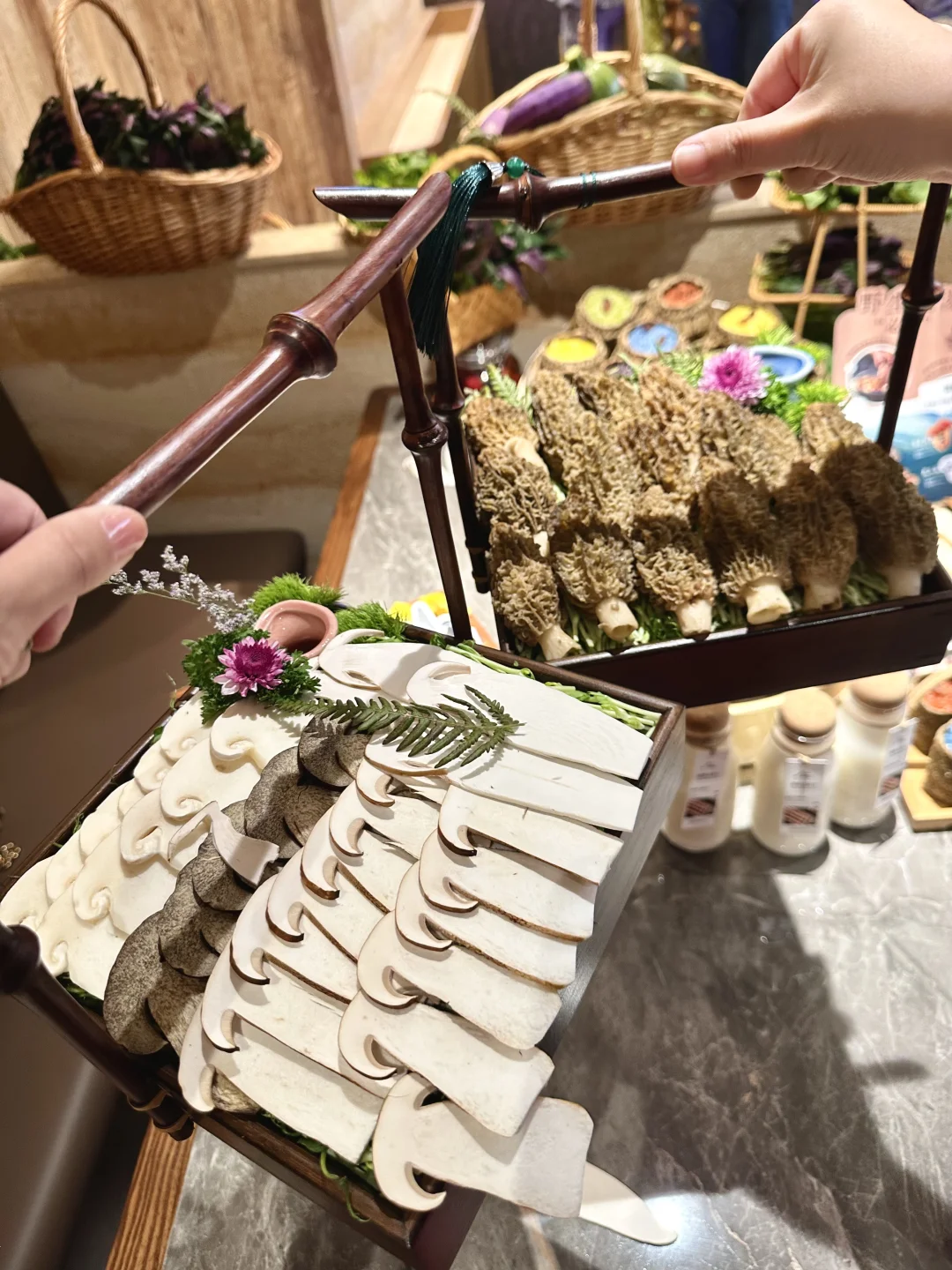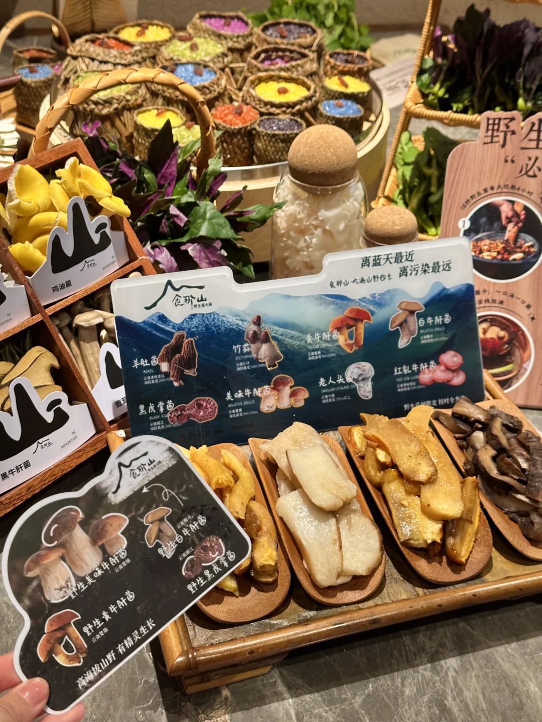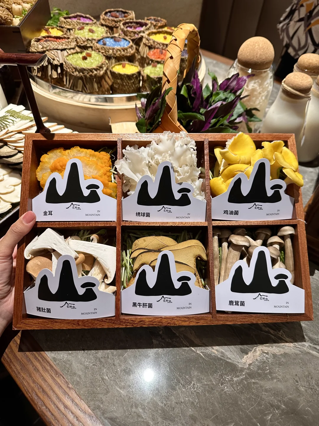 金耳+绣球菌+鸡油菌+猪肚菌+黑牛肝菌+鹿茸菌,6种拼盘,每次来她家的必点菜!真的很有云南特色,新鲜美味,一般火锅店真的吃不到