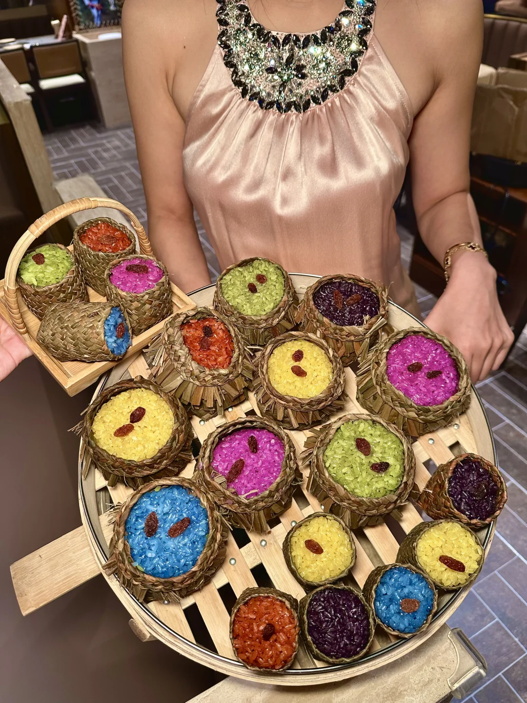 南方少数民族的传统美食,色彩斑斓, 营养价值丰富,染料都是天然植物,切碎煮水或泡水后,把糯米浸泡其中4-6小时,待其上色后,放入蒸锅蒸熟,如蝶豆花染色的紫色米富含花青素,绿茶染色的绿色米含有茶多酚,等~所以不仅好看也很有营养