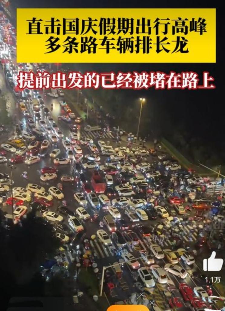 国庆出游大军首波“杀到”,第一批堵车人直接堵成鸳鸯锅!一半车道车龙蜿蜒,一半应急