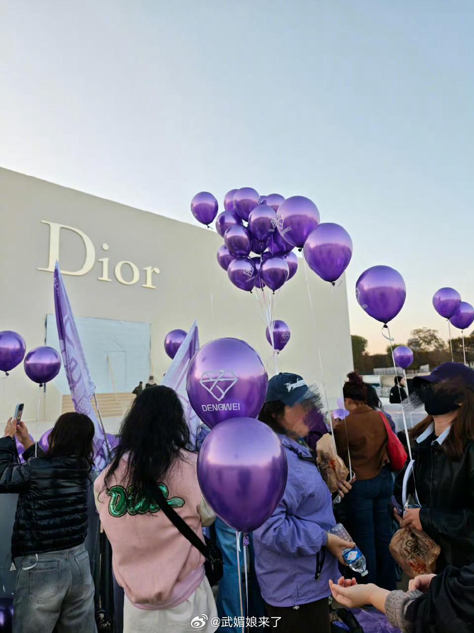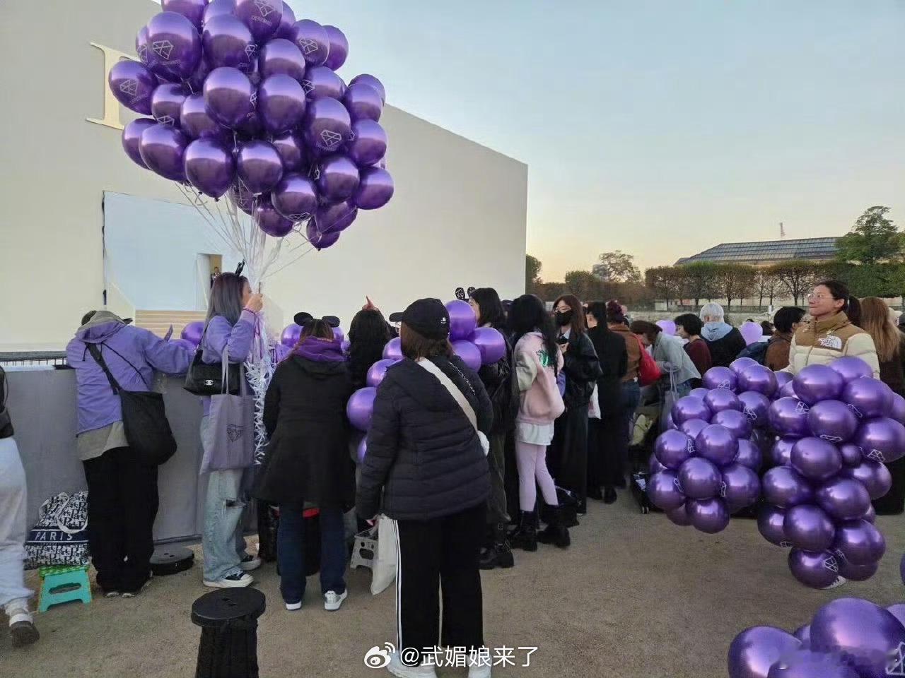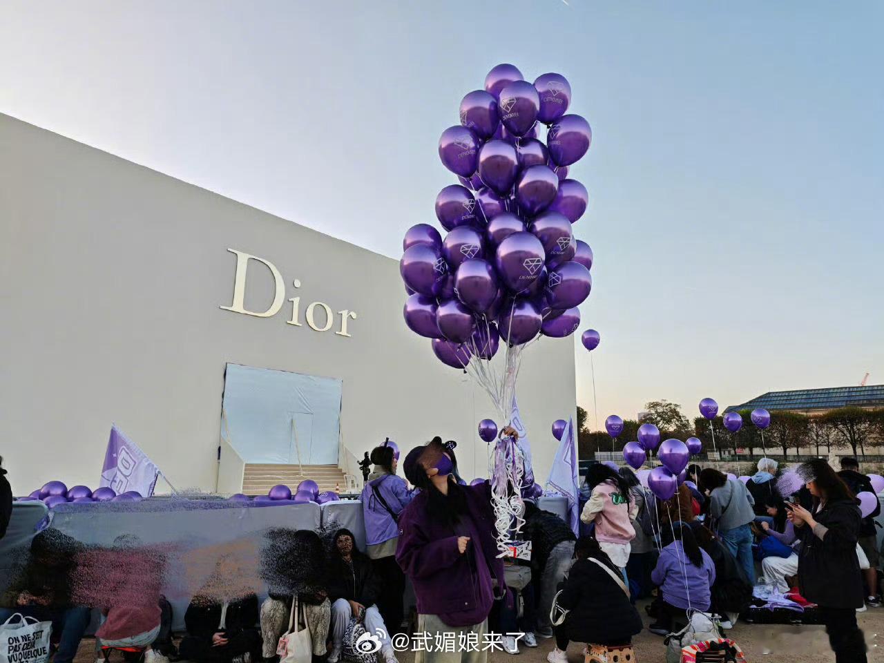 巴黎时装周Dior秀场外面都是邓为粉丝的紫色应援[送花花]