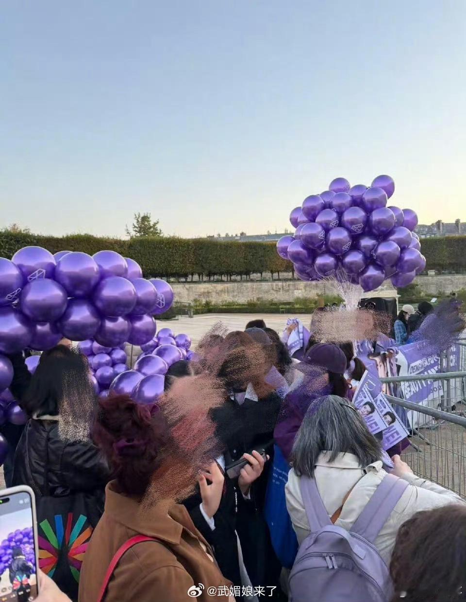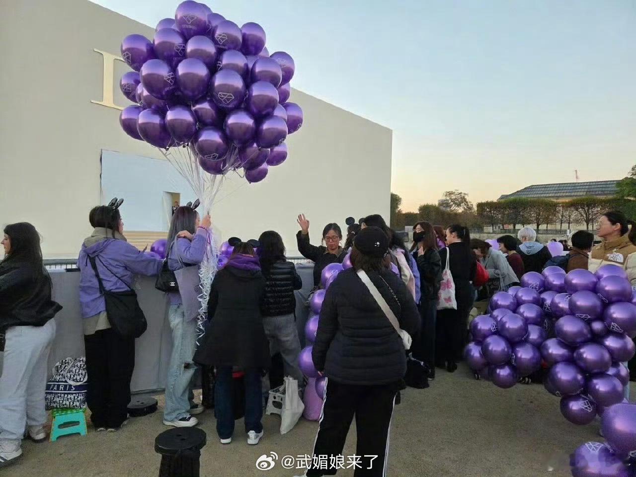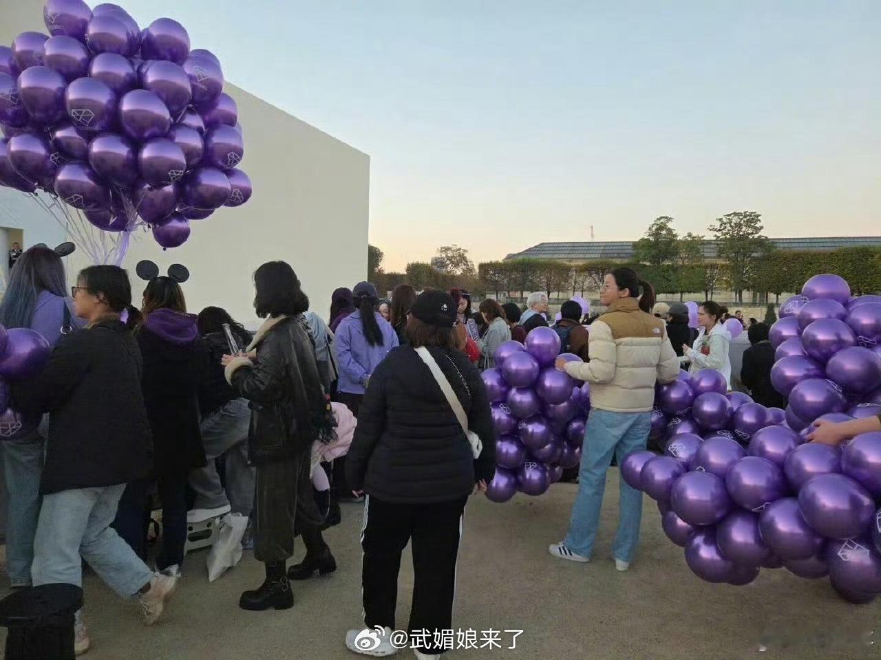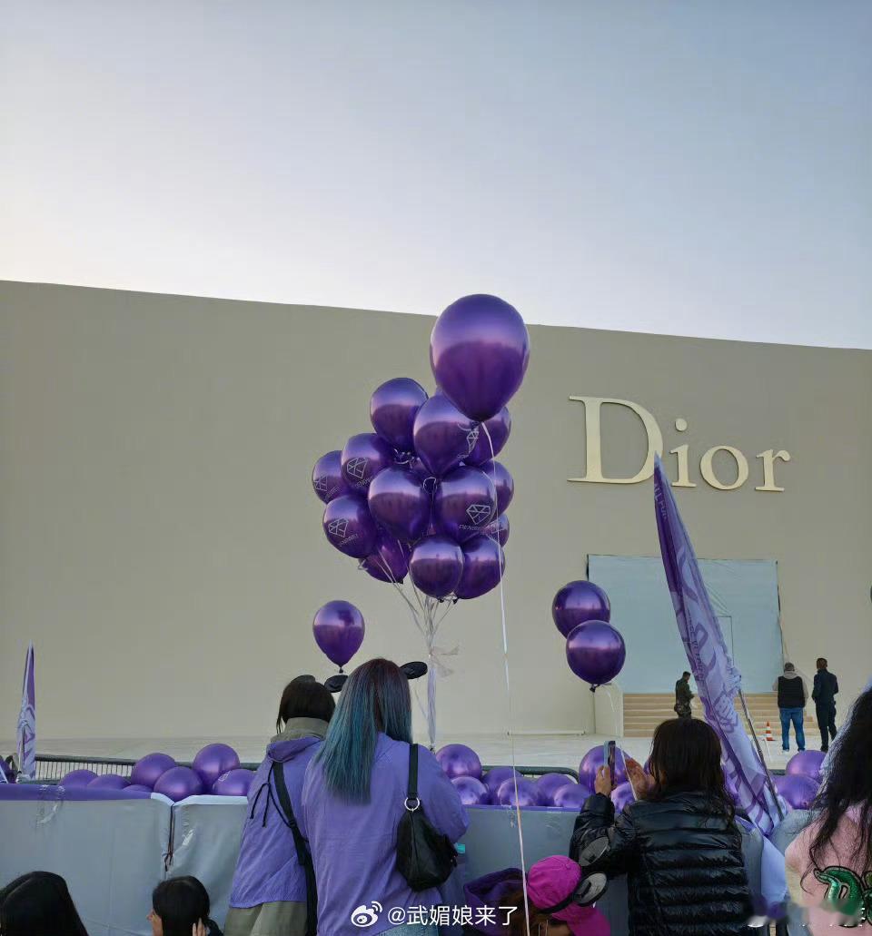 巴黎时装周Dior秀场外面都是邓为粉丝的紫色应援[送花花]
