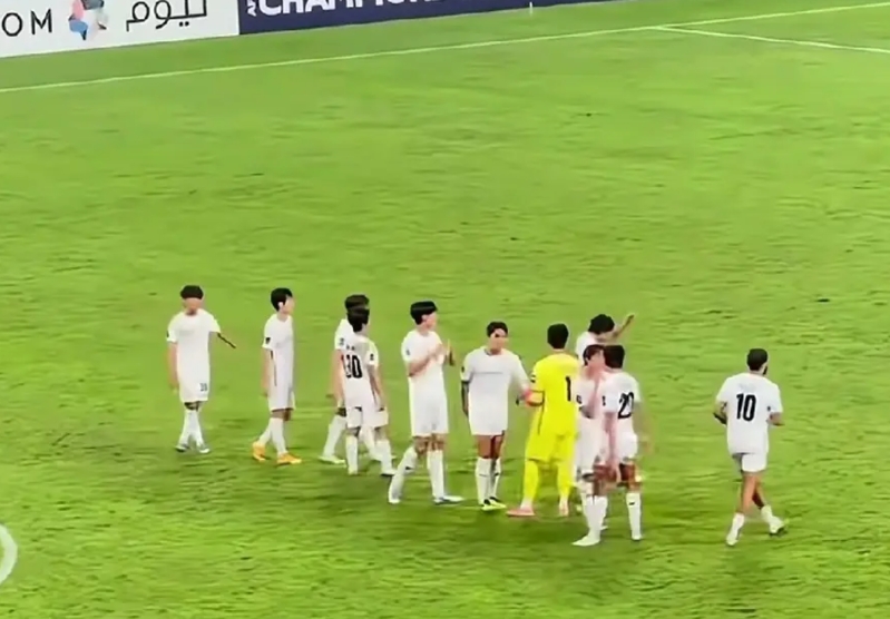 与江源FC赛后,蓉城主帅徐正源除与郑暻镐拥抱外,居然进场与对方球员逐一进行“摸头