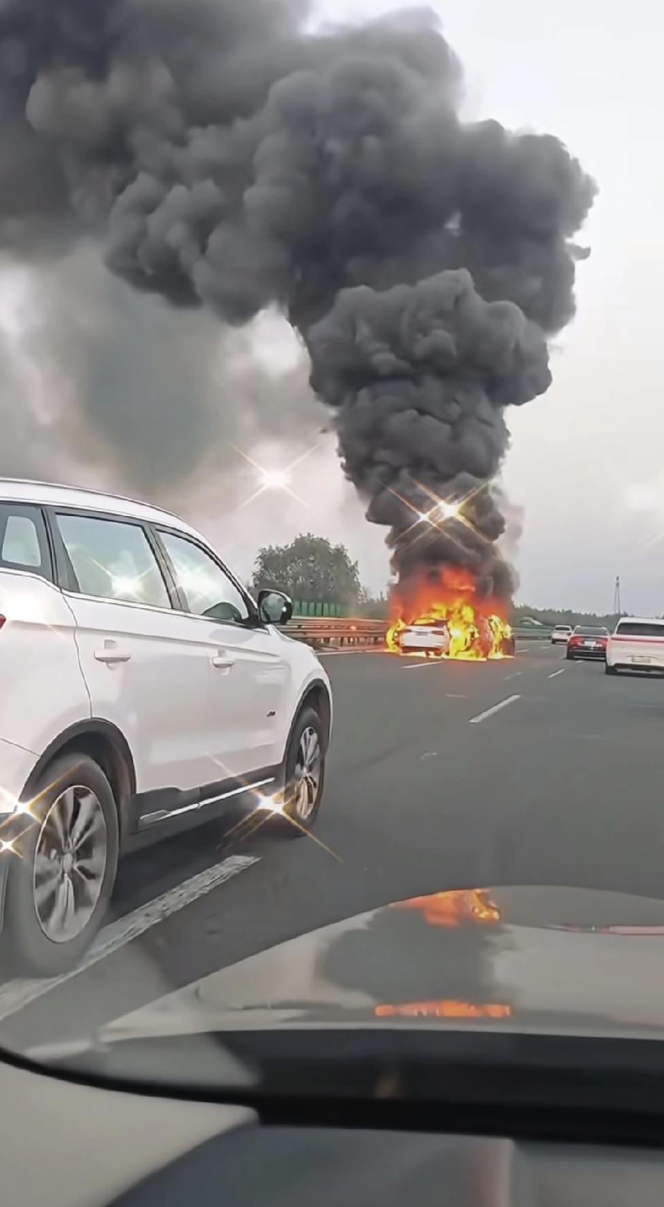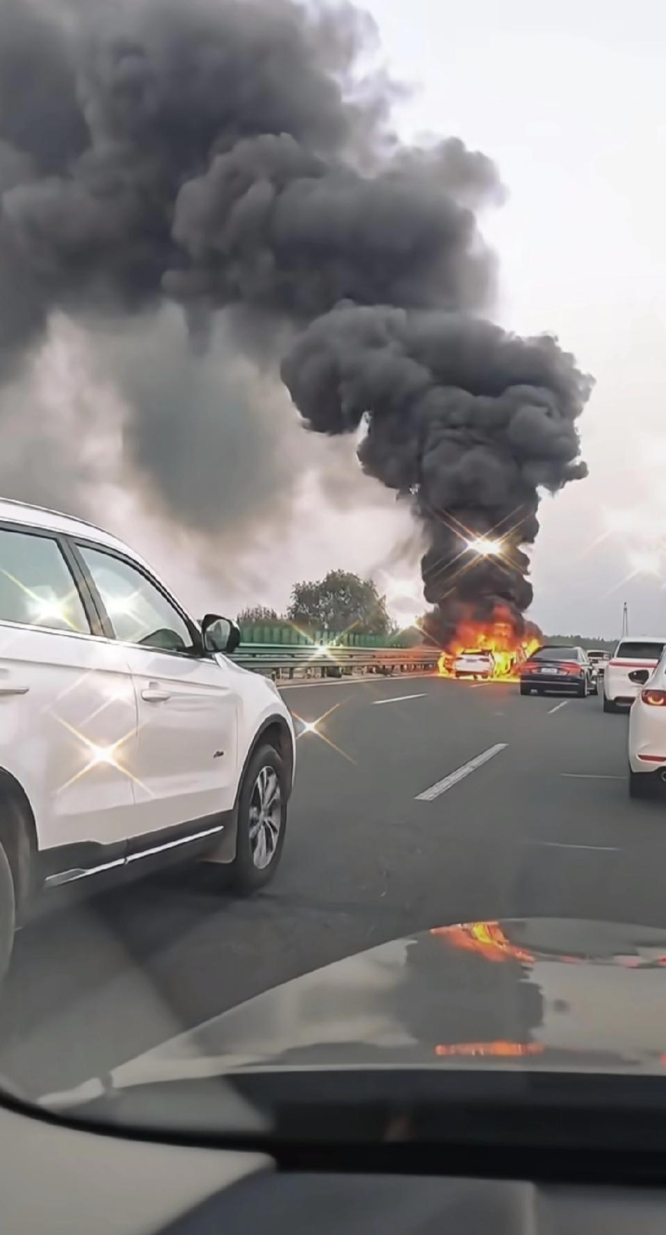 高速自燃希望人没事 高速上突然窜起冲天黑烟,车辆自燃成火球,这场景把人吓得心