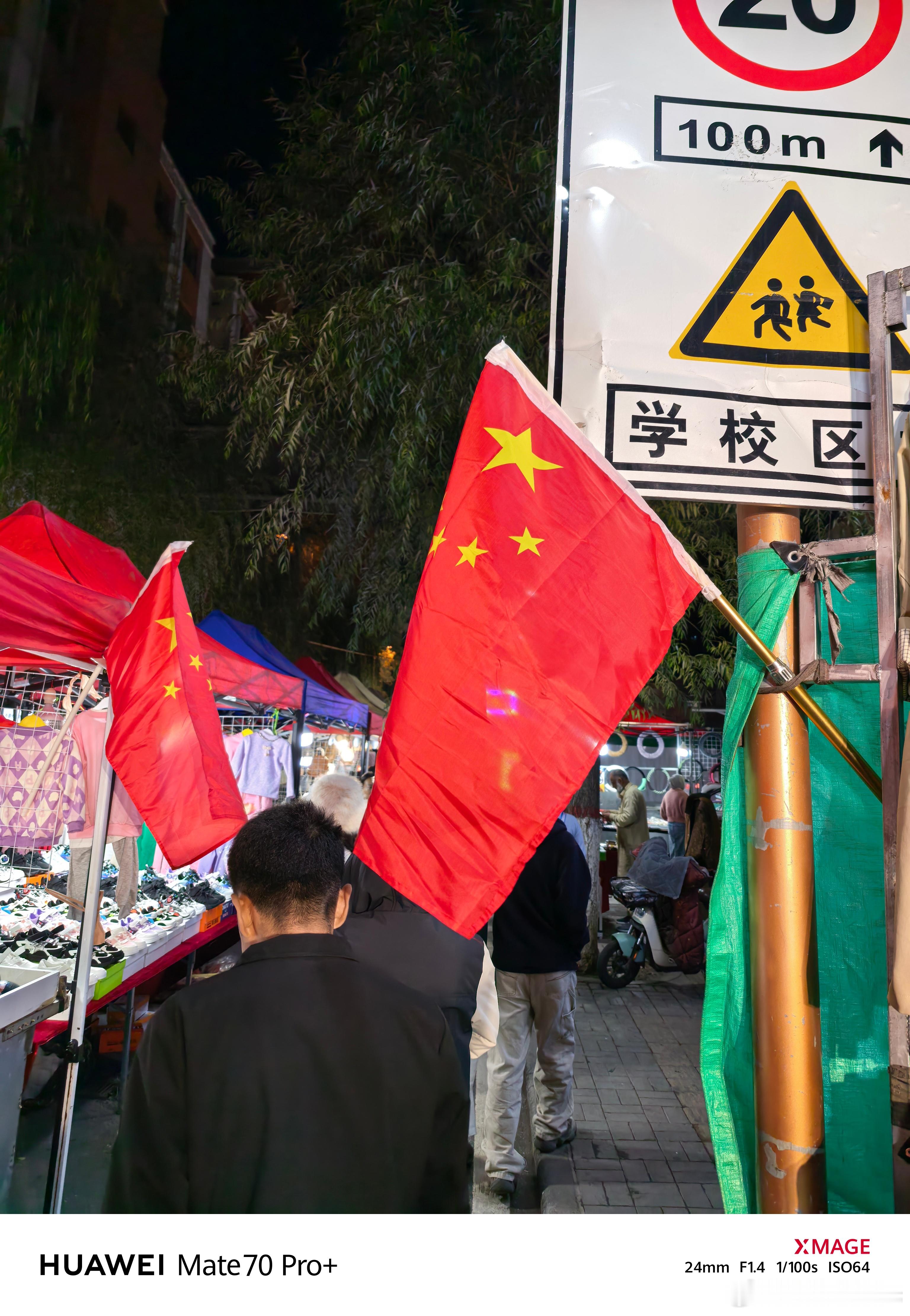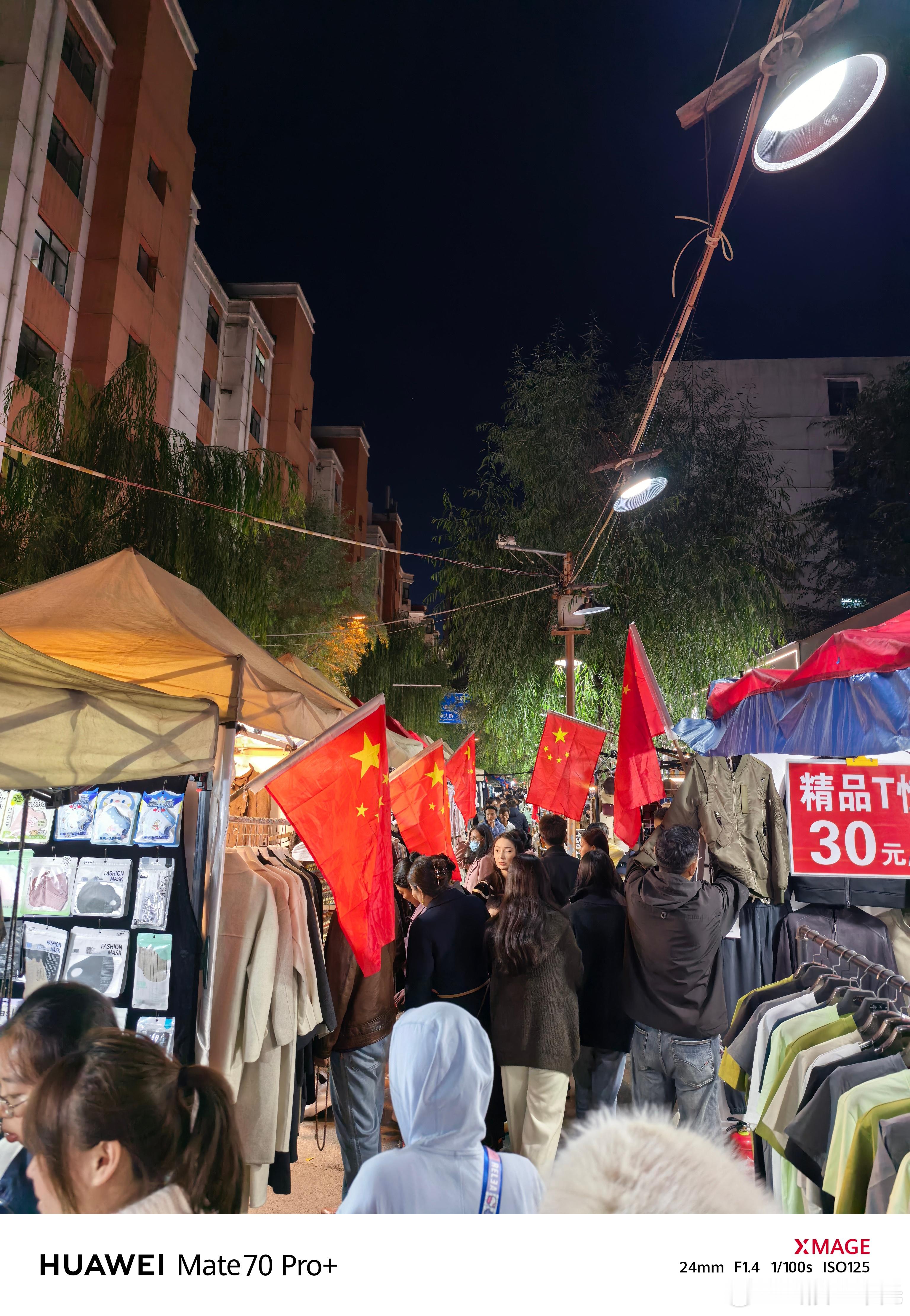 全国各地都飘起中国红夜市的每个摊位都悬挂着五星红旗[赞]​​​