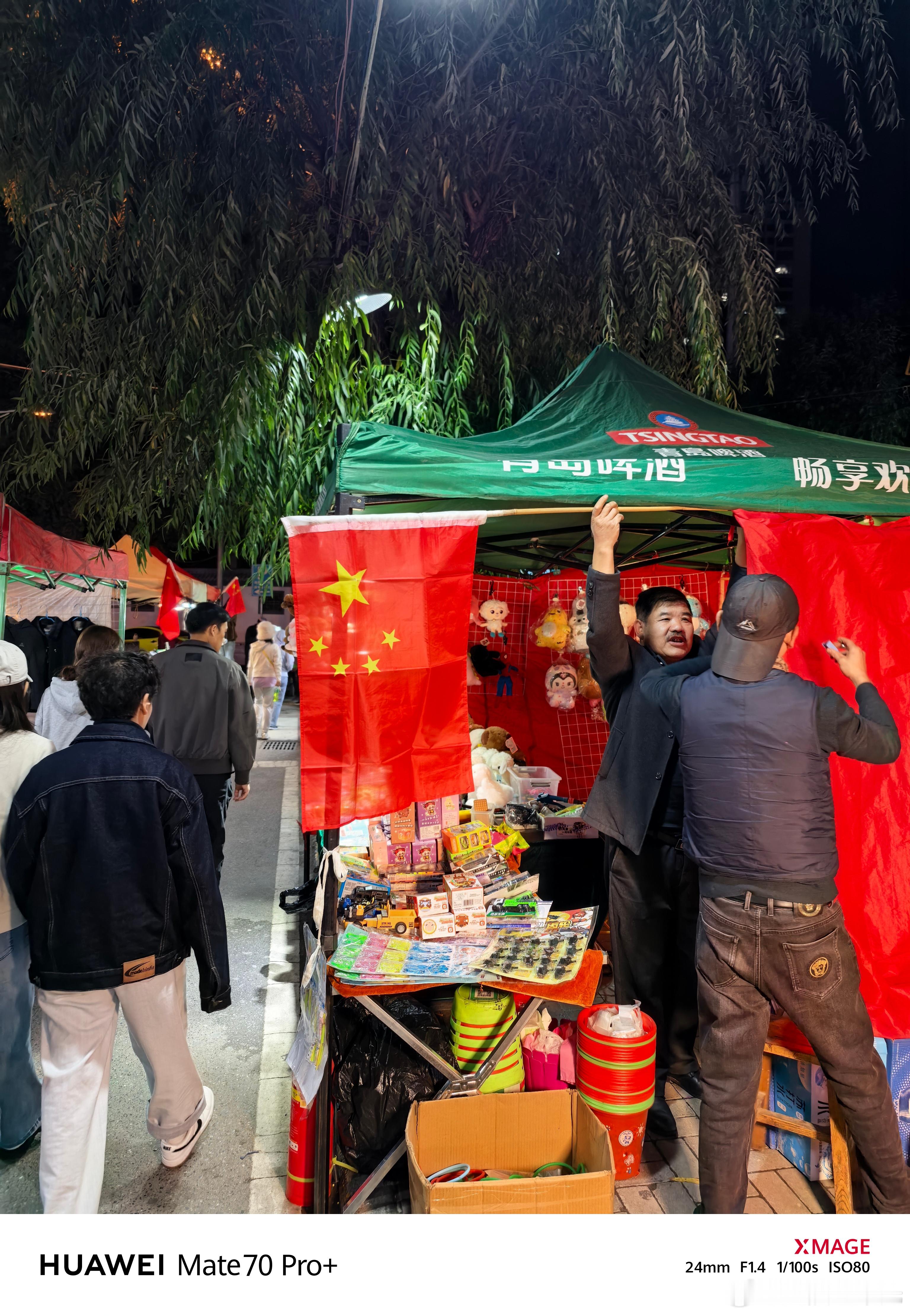 全国各地都飘起中国红夜市的每个摊位都悬挂着五星红旗[赞] ​​​