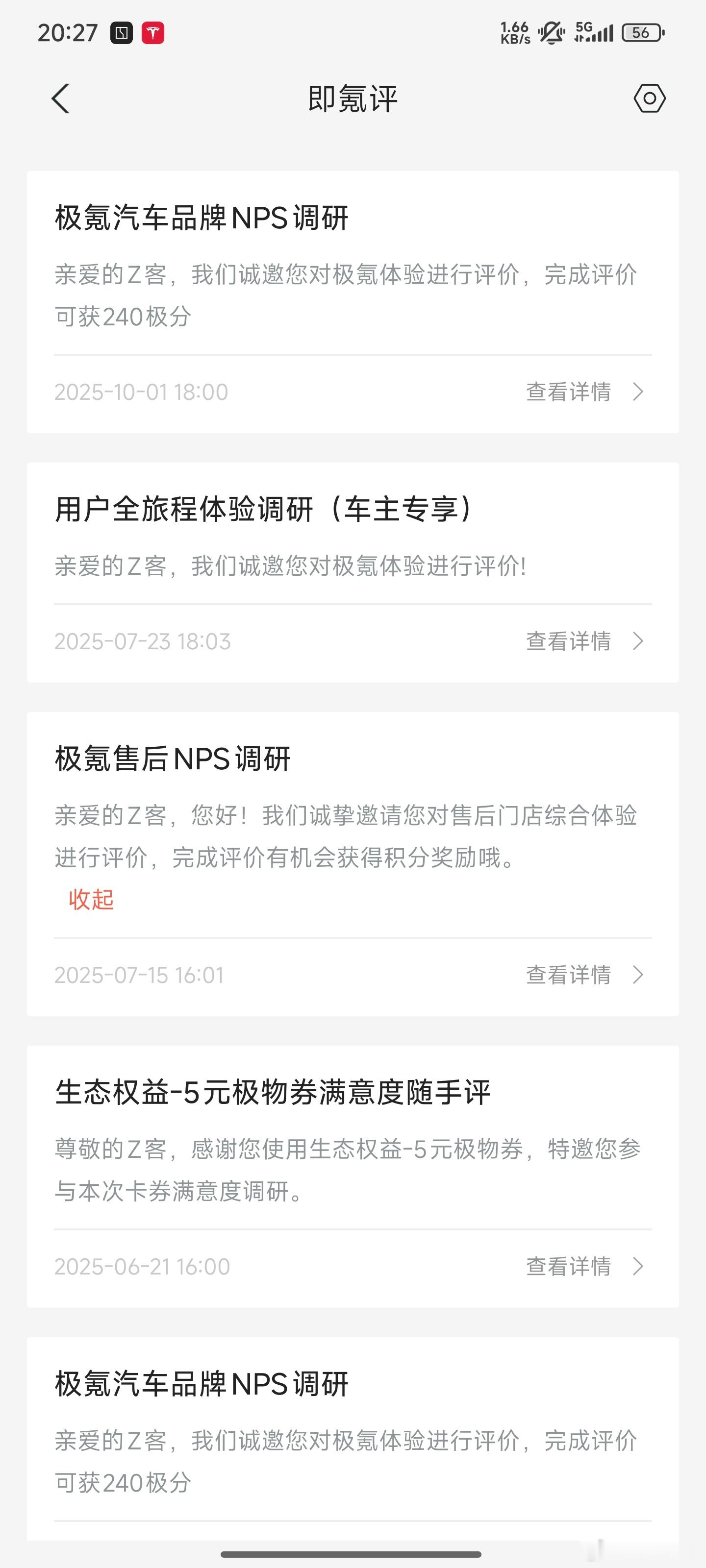 今年极氪做了不少次APP的NPS调研,努力在减少去年813进化日的影响,完成问卷240极分,够在商城换个小东西。