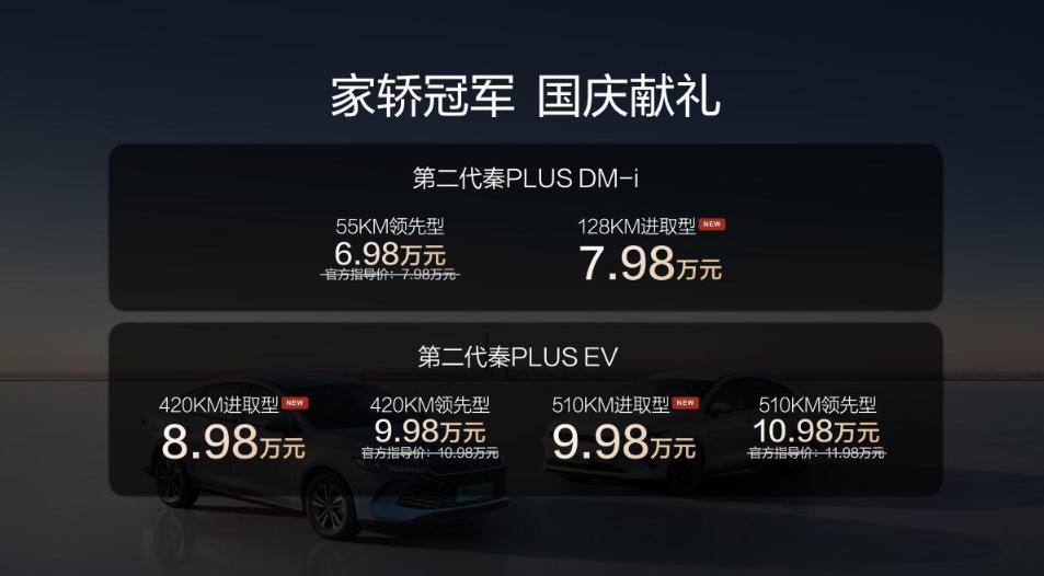 比亚迪摊牌“阳谋”了,竞争对手谁能跟? 当汽车圈还在感叹前段时间秦PLUS后台OTA升级,让百公里油耗低至2.69L的时候,不愧是节能省油全球王者典范!但是没想到新款秦PLUS又秀肌肉了,直接都“杀到”6字头了。和朋友聊天总结了:这是啥行为?相当于68块吃了自助餐,一看还有海鲜和牛羊肉,一看产地还是宁夏与新疆的,这价格与性价比实属夸张了。 在近期秦PLUS推新了,新增128KM续航版配置,价格你很难猜中,仅仅只有7.98万!要知道去年7.98万买55KM,今年同价换128KM纯电续航的!同样价格让超长纯电续航“猛增加”,比亚迪你还能再卷些吗?更关键的是,比亚迪还推出更多新款,居然6.98万就能买到入门款,同样搭载5代超级混动! 至于怎么选择?我认为直接考虑128KM纯电续航版本!假设每天行驶30KM,基本好几天才充一次电,完全可以当作纯油车来开!很省钱的,要知道这种超级混动每2万公里才保养一次的。 当然了,比亚迪没有因为新款就放弃老用户,这一点必须厚道。从比亚迪OTA的版本来看,今年上半年这款汽车就多次更新迭代,增加了20多项功能,都是很实用的配置,比如辅助驾驶,智能座舱等等都进行了增强,这些都是与用户息息相关的功能!