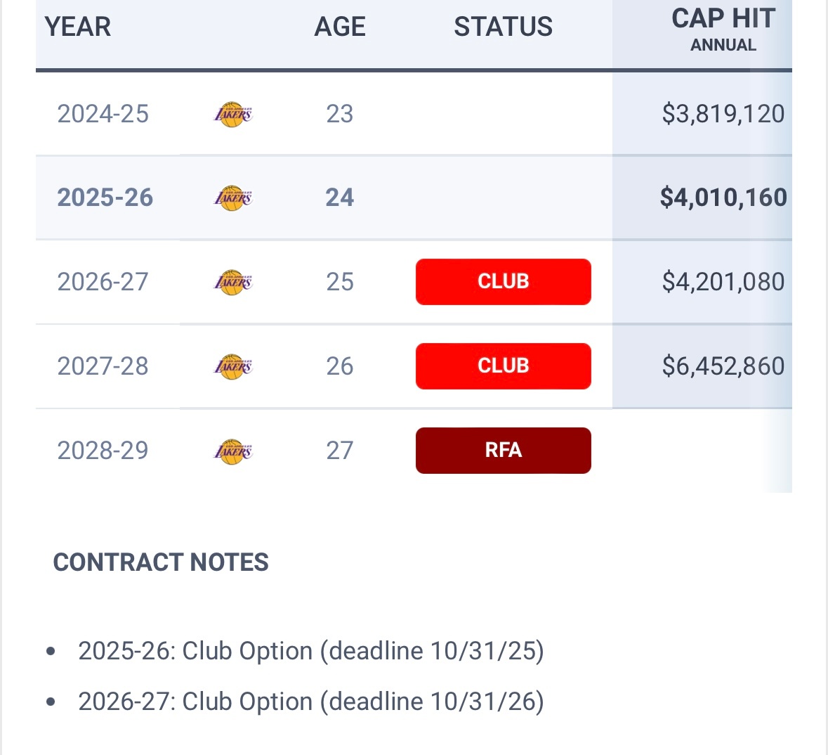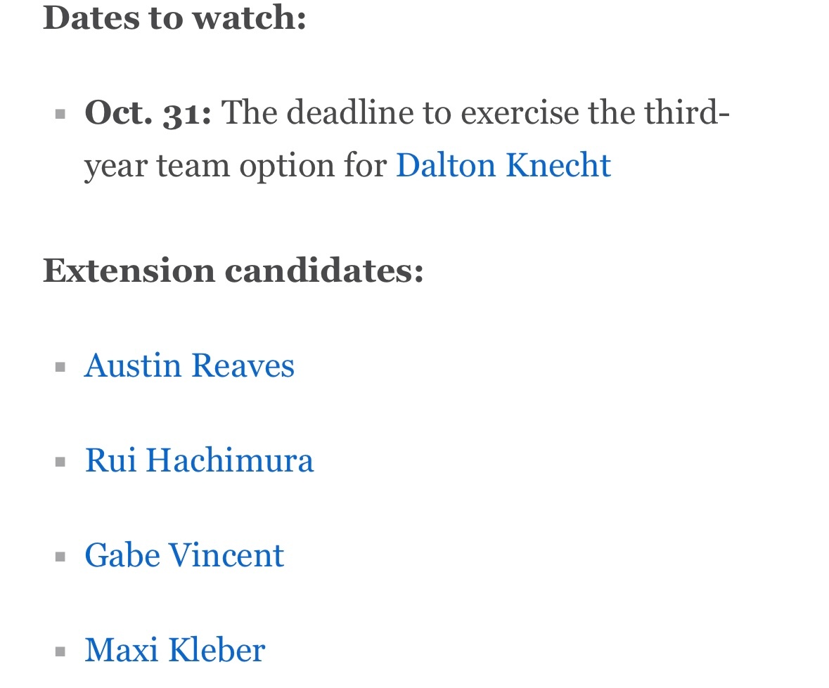 湖人队需要在美国时间10月31日之前决定是否执行克内克特的球队选项,价值420万美元。