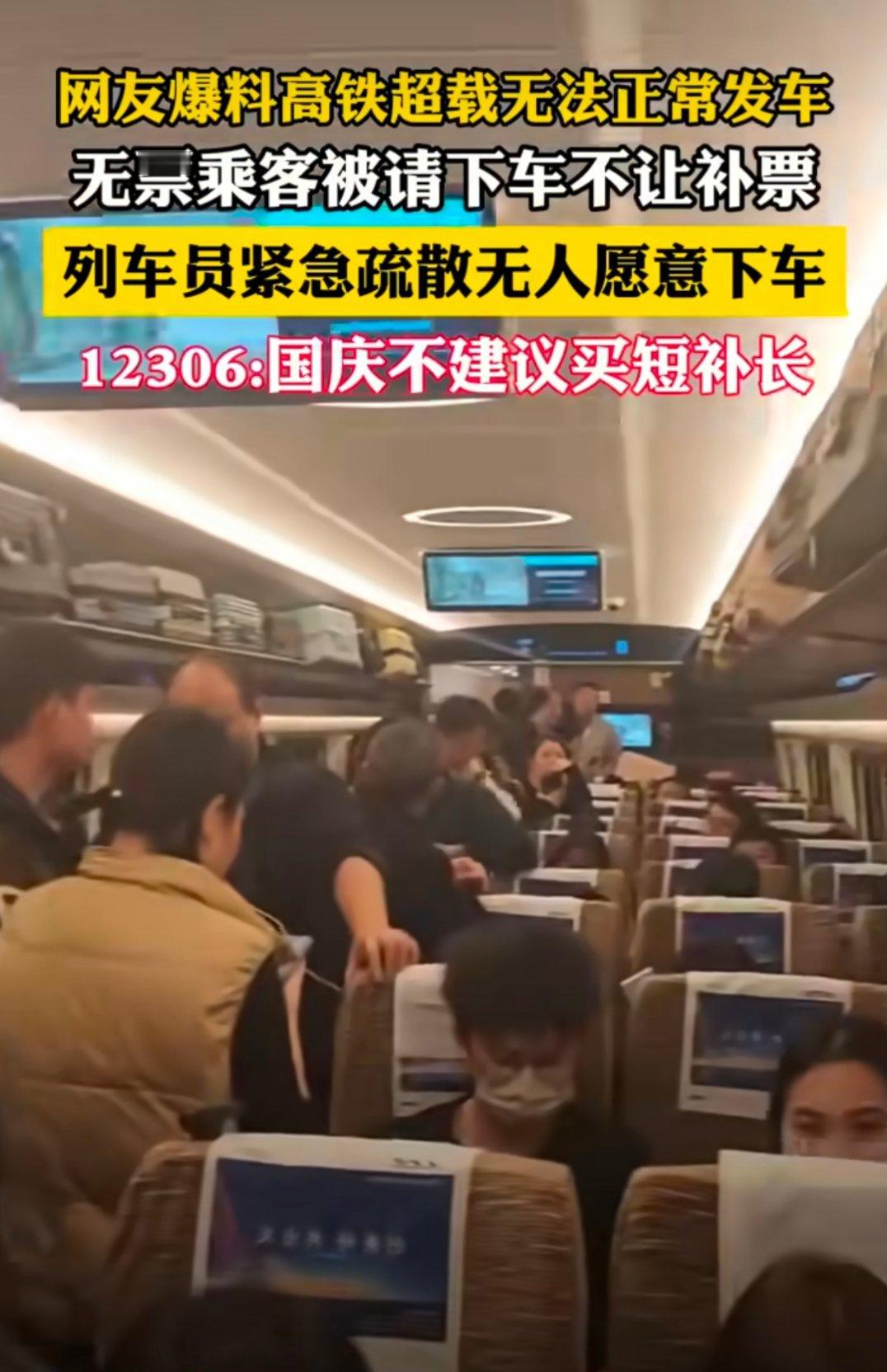12306回应列车超员报警临停也是没有办法的事情,国庆期间车票太难买了!很多等着回家的人买不到票,就会选择买短乘常,然后上车补票!这样的人多了,就会出现一些补不到票的只能请下车!建议大家没买到票的还是选择错峰出行吧,免得麻烦~G3754次列车因买短乘长超员临停