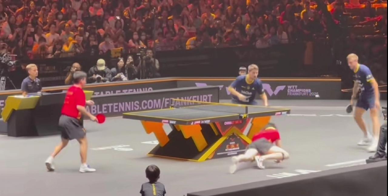 就问这个大灯你对着王楚钦连晃两次是几个意思。也正是因为他连着两次闪光灯,才导致王楚钦眼睛注意力不集中摔倒在地,差点受伤。就连现场解说员都说这要不是他双手撑住了,混双还能打吗? 这次赛事透露着很多不正常,现场闪光灯乱闪,晚上混双时还是被闪,外战时现场混乱嘈杂,都发球了裁判还多次打断运动员。挑战鹰眼明明没有遮挡却仍然罚分。总之就是各种干扰。 王楚钦10月1日一天三赛,不仅扛住了体力上的消耗,还三项都赢了。在祖国生日这天献了三份大礼!这份荣誉值得骄傲!