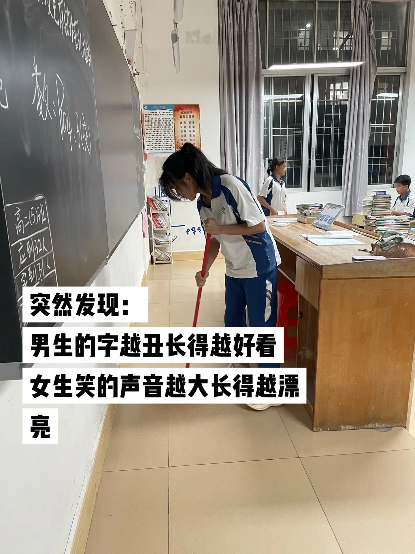 突然发现:男生的字越丑长得越好看女生笑的声音越大长得越漂亮.