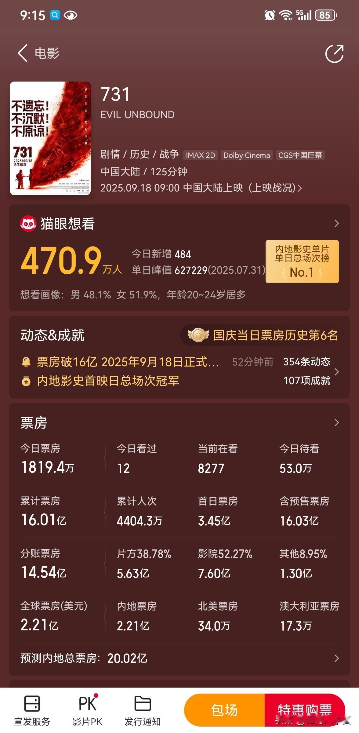 731票房破16亿, 屈辱历史不应该被遗忘。 黑子再怎么黑也没用。