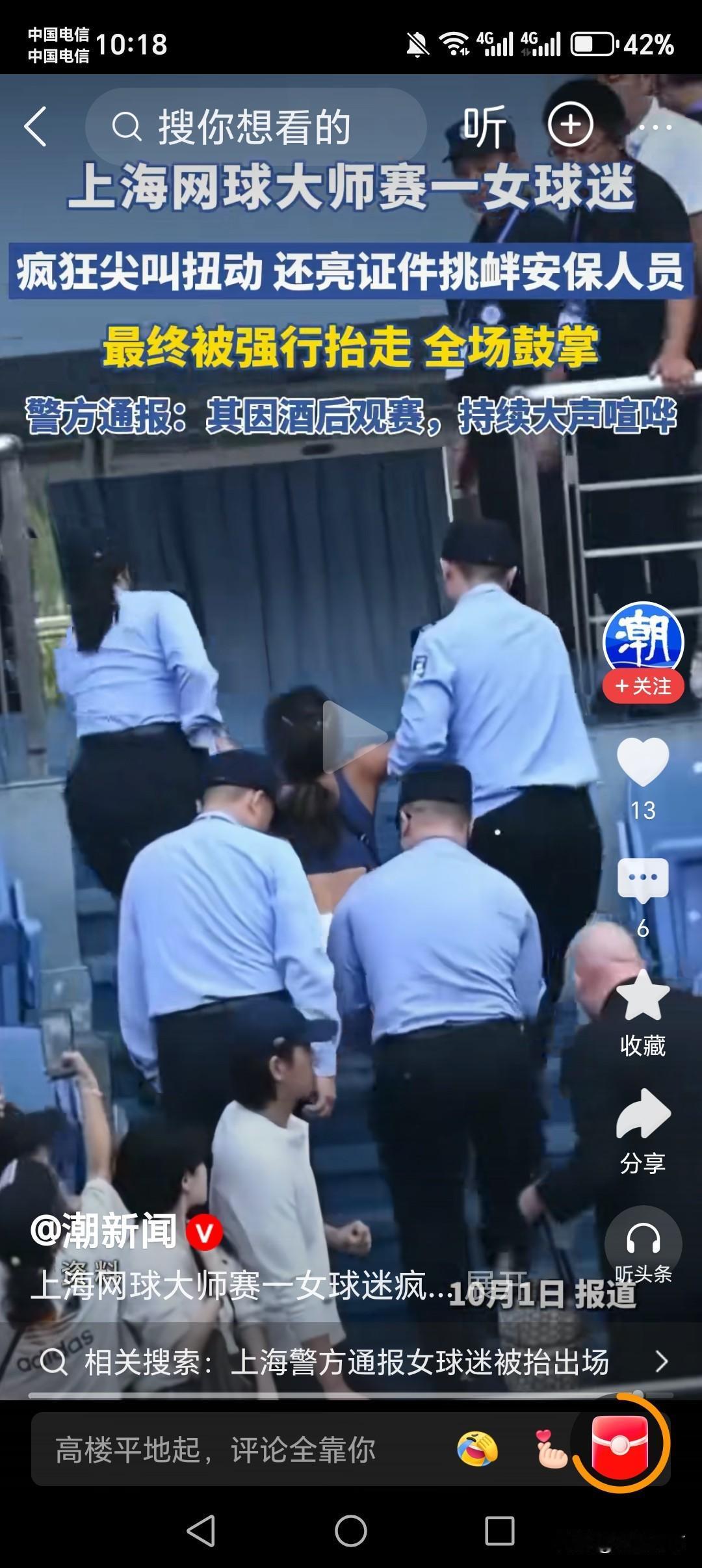 瑞典“亮证姐”火了, 这人不仅在国内火了, 在意大利和法国也爆火的不行。 上海网球大师赛上,瑞典“亮证姐”凭一场闹剧火遍中外,意大利、法国网友都在围观这场尴尬表演。 对手发球时她扯着嗓子尖叫,被指像“狒狒叫”,安保多次劝阻后,她竟站在座位上扭动挑衅,掏出护照喊“我是外国人”,用蹩脚英文嘶吼的模样被几百个机位拍个正着。 最讽刺的是她身边的儿子,全程满脸尴尬,而她闹到失控时还喊着“打电话给爸爸”找兜底。所谓的“外国身份”没成护身符,反而让她被架出场时沦为笑柄。 更戏剧的是,网传她外企高管老公火速删掉领英上的相关照片,生怕被这场闹剧牵连。这事哪是“外国身份”的炫耀,分明是规则意识的缺失——赛场礼仪不分国籍,护照更撑不起教养。 一张护照换不来特殊待遇,家庭教育才是真正的体面。你觉得该怎么约束赛场不文明行为?