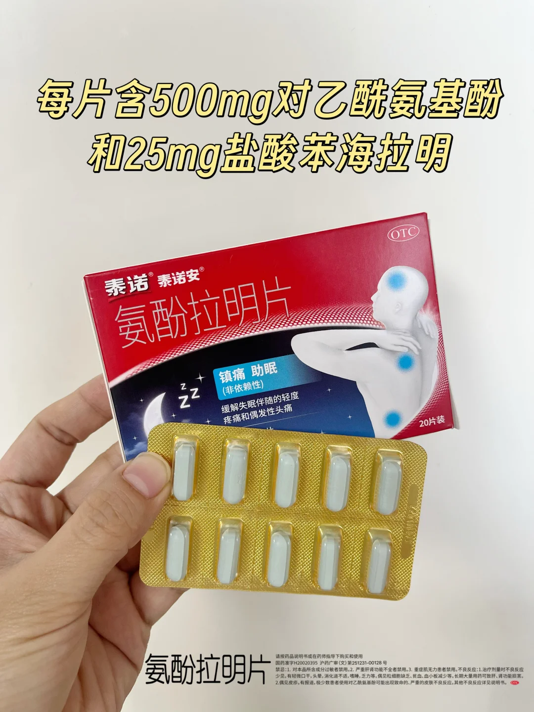 ✅每片含有:500mg对乙酰氨基酚+25mg盐酸苯海拉明