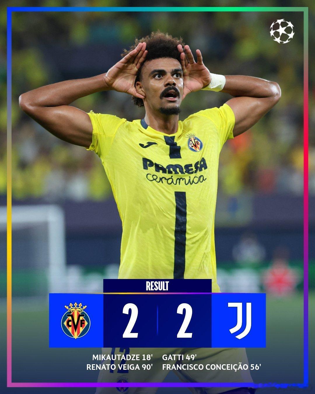 尤文图斯[超话]欧冠联赛比利亚雷亚尔2比2尤文图斯
