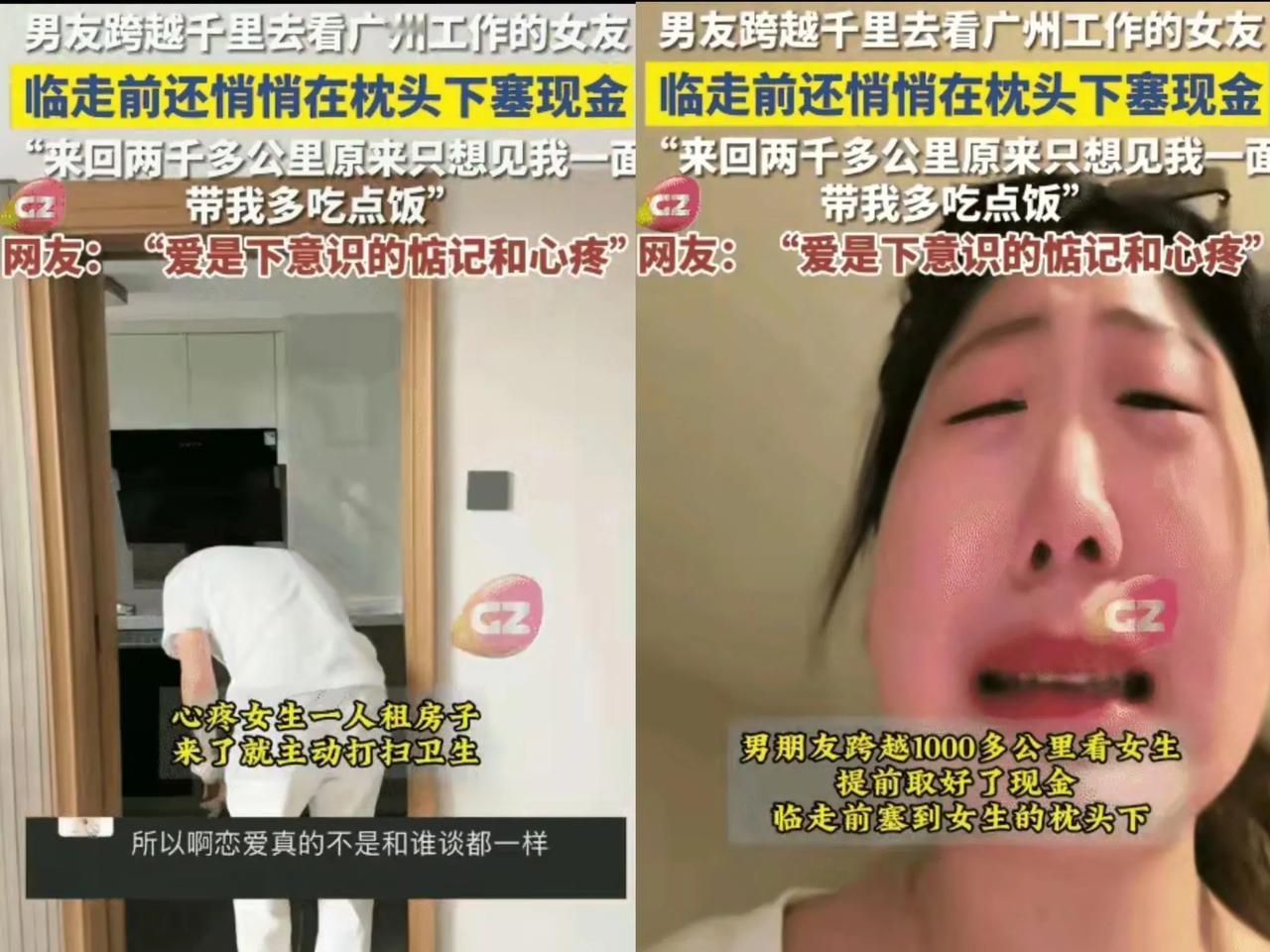 破防了!广州,女生和男友温存后 竟在枕头下发现一沓现金,瞬间泪崩! 这对异地恋情侣,男生在武汉,女生在广州,相隔千里。女生独自租房打工,日子简单清苦。男生突然到访,几天陪伴后悄然留下现金! 很多人觉得异地恋没结果,可这对情侣却让人看到希望。真正的爱,不是嘴上的甜言蜜语,而是下意识的惦记。男生跨越距离,默默为女生考虑,这细节太戳人! 异地恋难在看不见,但只要双方多花心思,多些这份 “放在心上” 的执着,感情就能长久! 不过,不管结果怎么说,要看男女之间的缘分了,好好珍惜。祝你们俩终成眷属!白头偕老! 你身边有这样暖心的异地恋故事吗?快来说说。