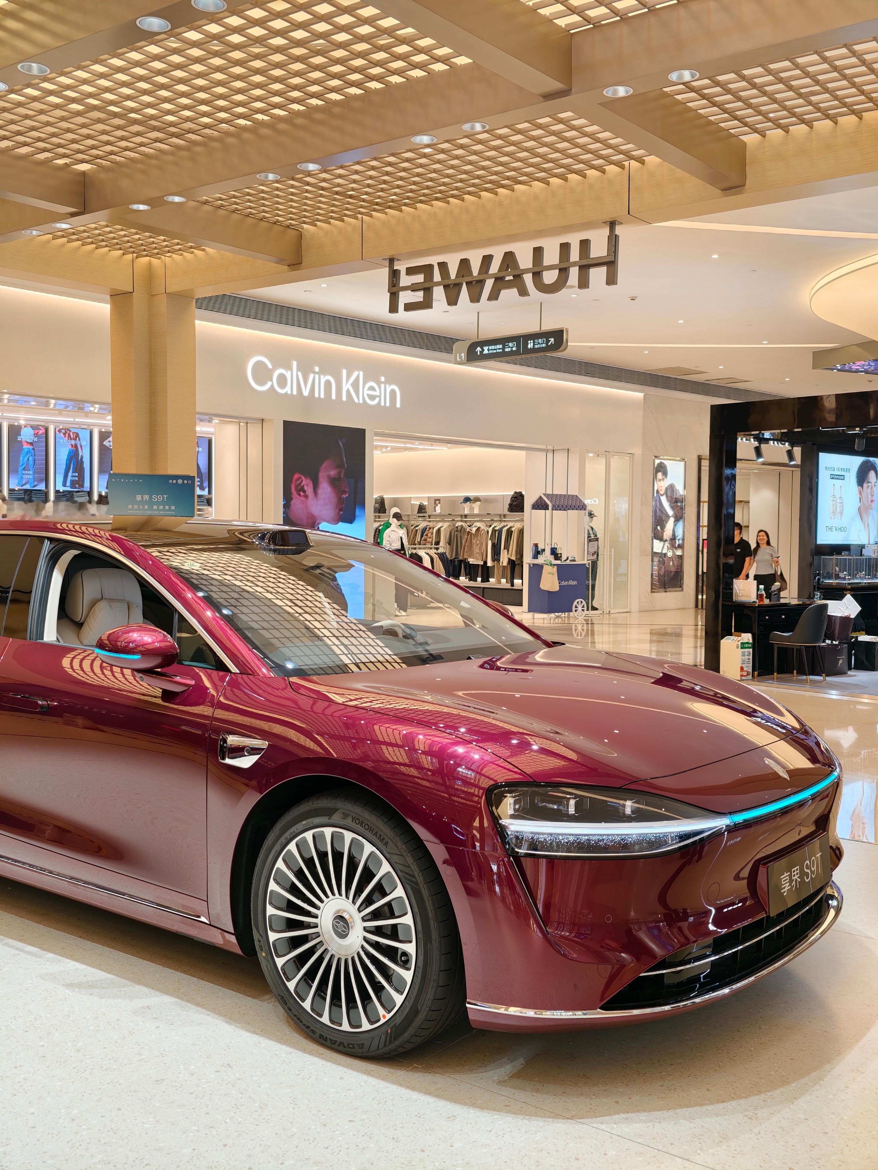 路过商场看到享界S9T,确实有点帅!屁股很长,二排空间很大,还有投影幕布电动门科