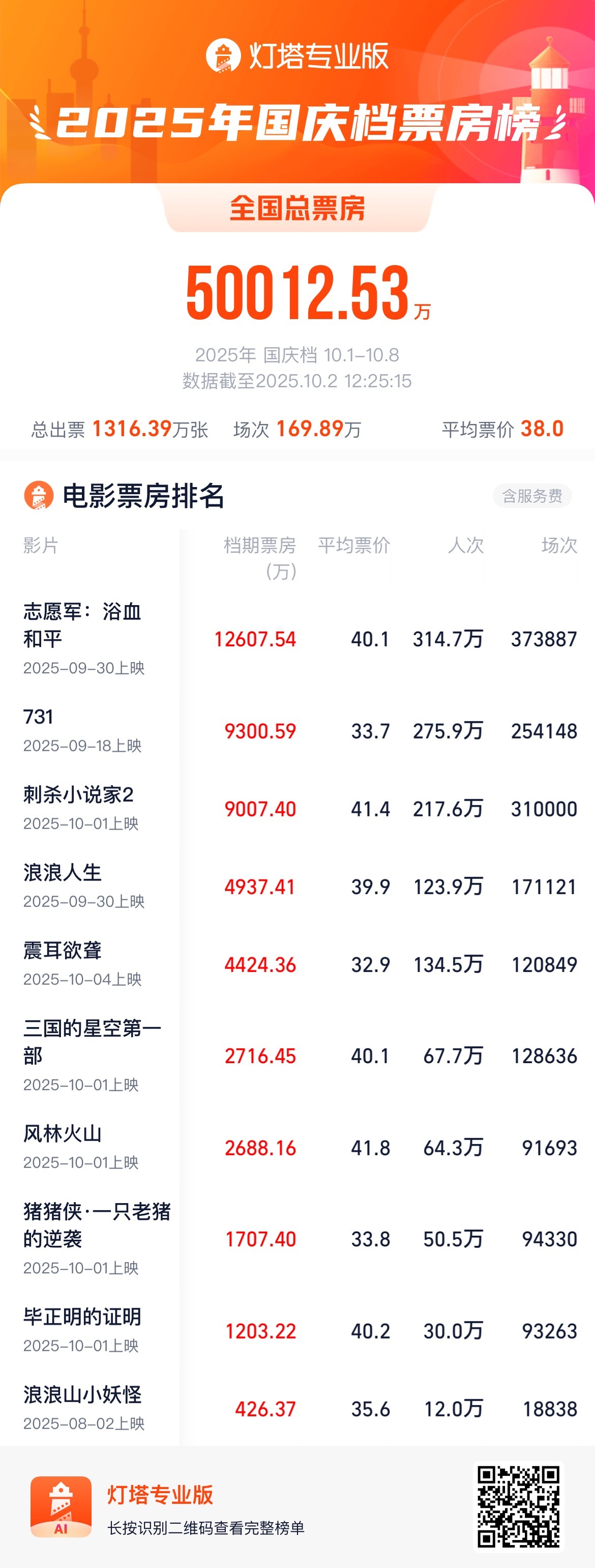 #2025国庆档票房破5亿# 据灯塔专业版实时数据,截至10月2日12时25分,2025年国庆档(10月1日—10月8日)档期总票房(含预售)突破5亿。