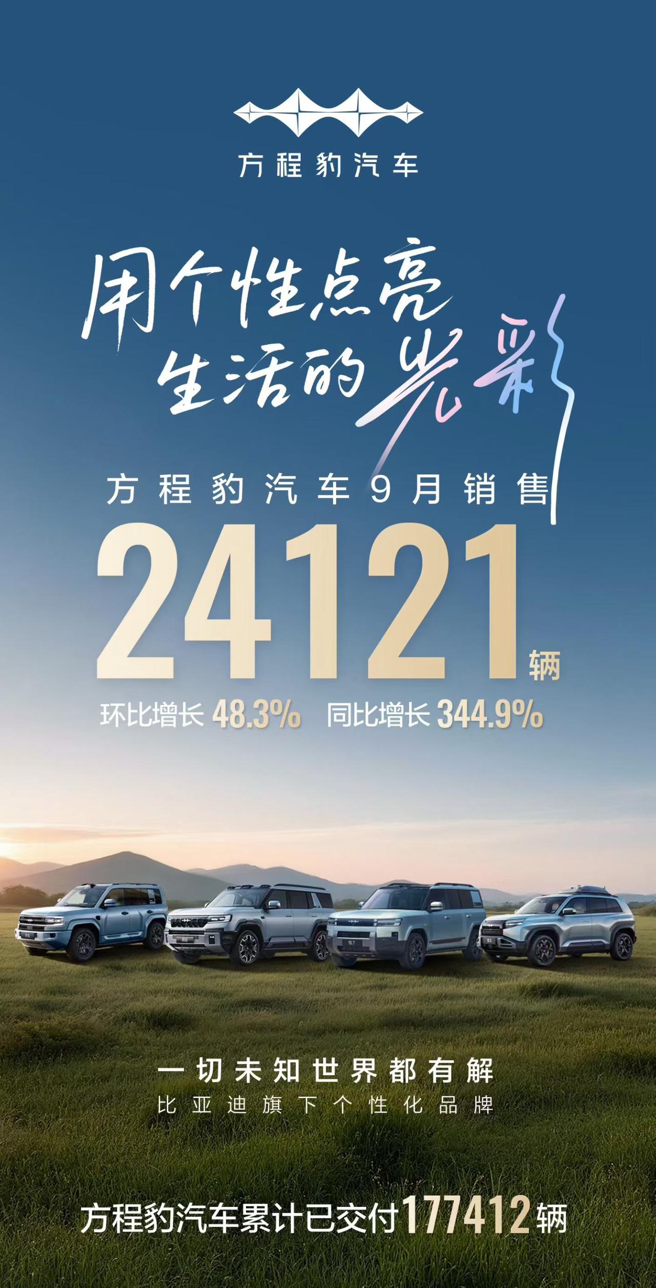 腾势 9月销售12407辆,同比增21% 方程豹 9月销售24121辆,同比增345%