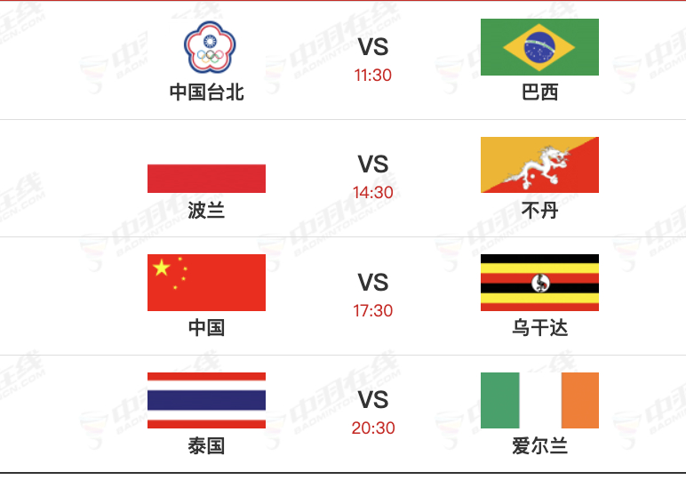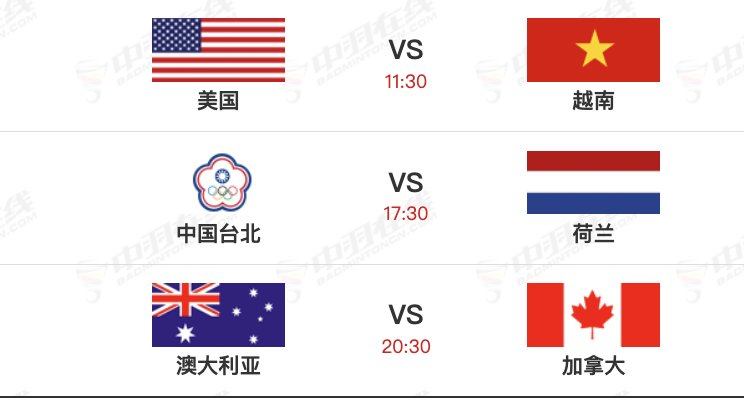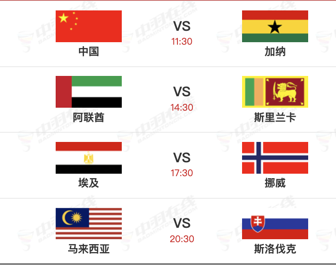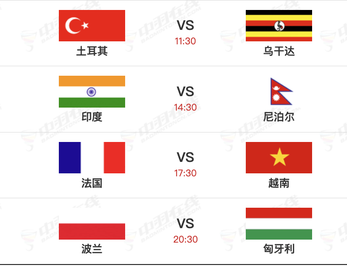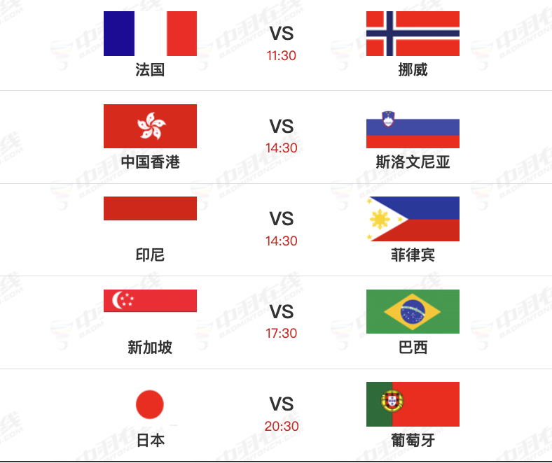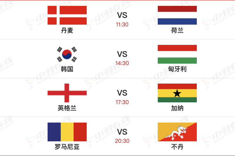2025年羽毛球世青赛 混合团体赛10月6日首日赛程,11点30开赛: