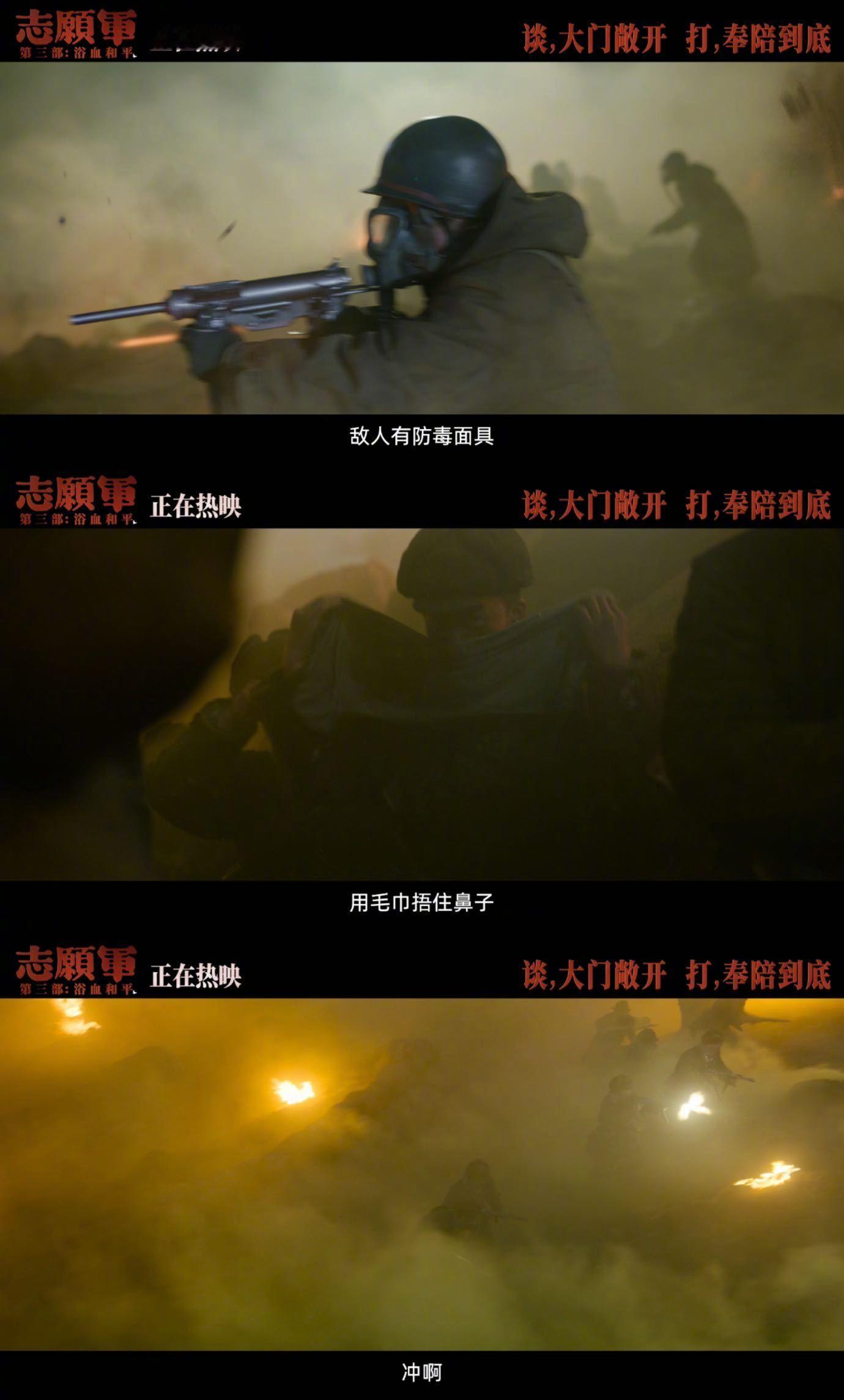 敌人的恶行,一桩桩都不可姑息,更不能遗忘。他们用阴招,我军偏要从正面碾过去。有种,就正面刚,惹急了,战场上见!面对毒/气/弹的侵袭,阵地上的战士们无畏冲锋,用湿毛巾勒紧口鼻,在毒雾与炮火中化身钢铁洪流,向着敌人发起猛烈反攻。压在心里的那股气,在这一刻彻底爆发,变作硬核的反击。战士们浴血冲锋,用最硬的拳头,把一切诡/计砸得粉碎!在电影中看到这段时,真的提气又解恨,希望大家都能到影院一起见证这场硬核反击。