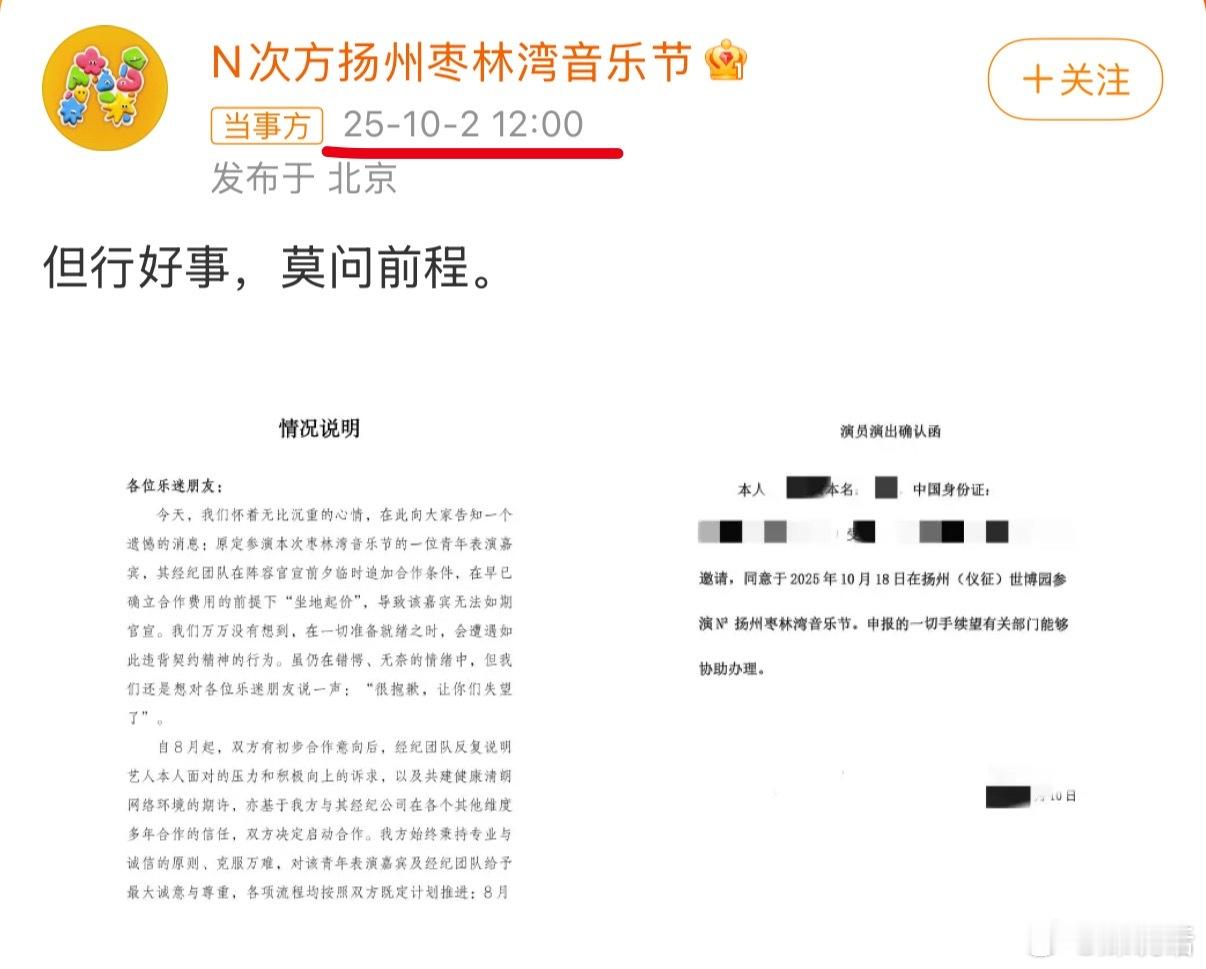 扬州枣林湾音乐节官博开撕某刚红艺人的音乐节首秀“坐地起价”[思考],是谁呢?